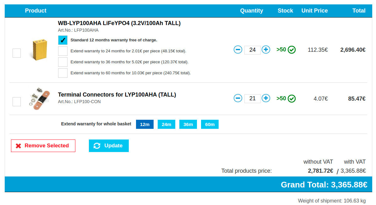 Za 3500 € aj s dopravou, dostanem: To je 24 x 100 x 3.25 = 7800 Wh