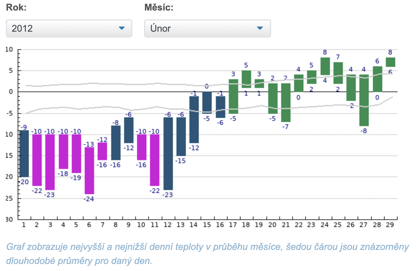 Mám sice záznamy teplot po minutě od roku 2017, ale pro dlouhodobé účely uchování je agreguji jako průměr za den.