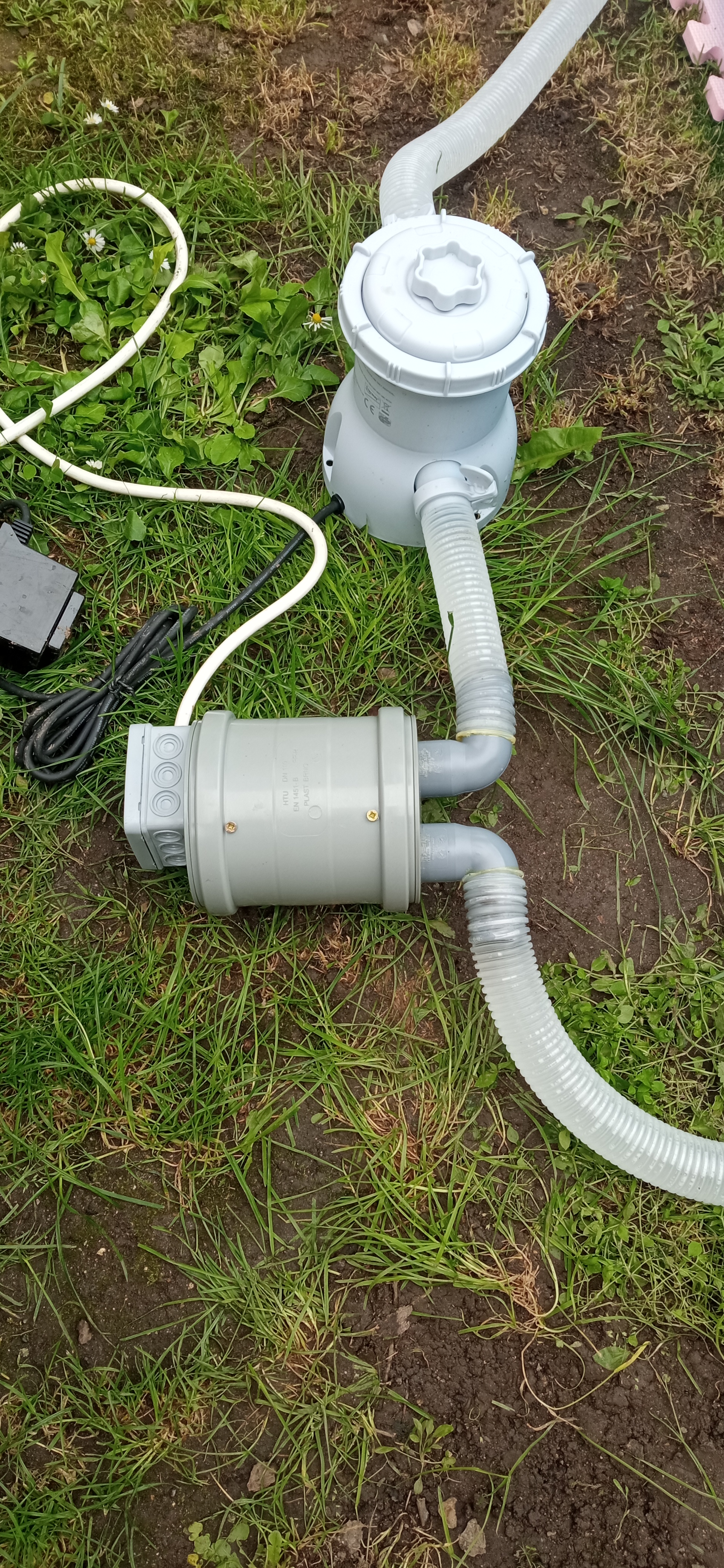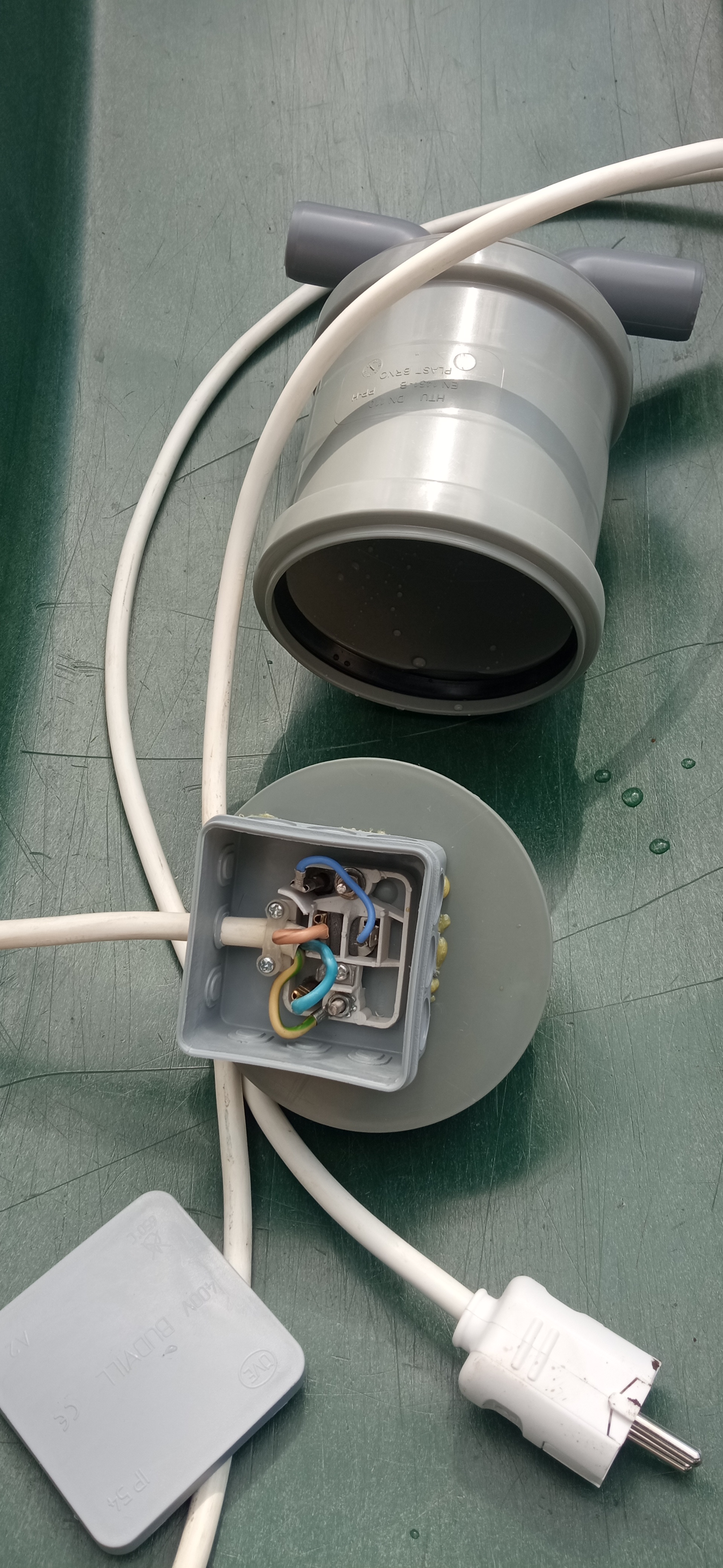 Ak by sa chcel niekto inšpirovať, takýto môj vymyslel na púšťanie prebytkov do bazénu pre deti. Špirála (1000W) s bezpečnostným termostatom z rýchlovarnej kanvice a HT spojka, dve blendy a dva kolienka. Jednoduche a funkčné.