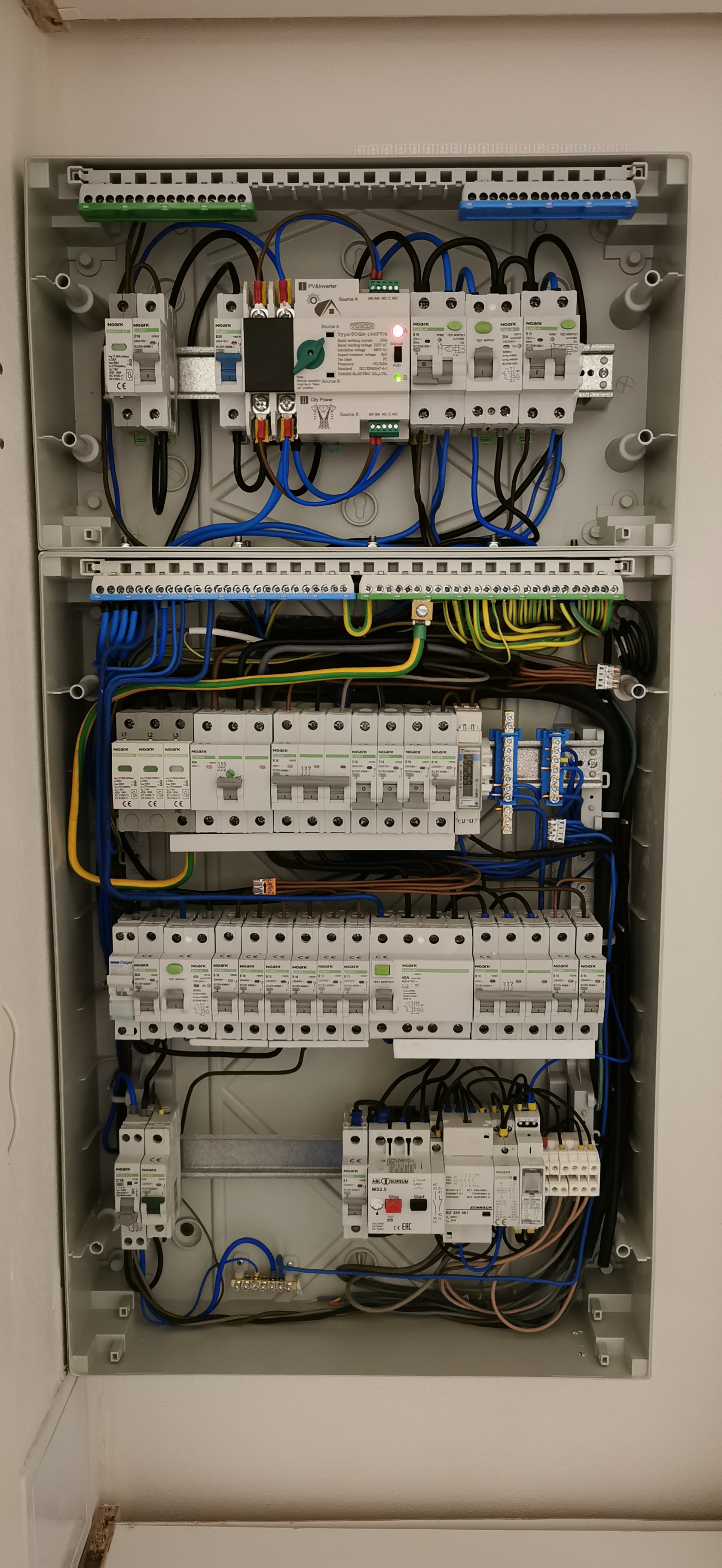 Dnes pro velký úspěch pokračování přepojeno na přepínač1/0/2 pračka + myčka a až dorazí proudové relé, tak před vstup dodám ještě to. No rozvaděč se již plní, ale ono to bude akorát. Vyrušil jsem jeden třífázový chránič a místo něj nakoupil jednofázový a harampádí kolem. Zítra ještě přehodit na kabelu co vede k čerpadlu a do zahradního domku z třífaze na jednu správnou a pojede i čerpadlo a nabíječka robotické sekačky. Tohle přepínání bude takový letní režim, v zimě to nebudu týrat a půjde pračka myčka na ČEZ. Multiplus a bypass přepínač beru z L1, trouba L2, pračka+myčka pokud pujde na ČEZ tak L3. Takže pokud bude souběh, tak nebude vstupní 25A dostávat tak na frak. Je mi jasné že to není best přepnout z L1 na L3, ale je tam mezipoloha a nebudu na to přepínání spěchat, tak snad to bude OK