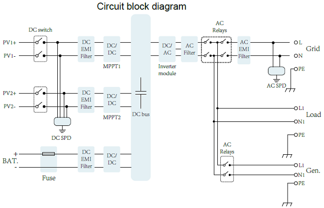 doplnění předchozího: Jak je ale patrné z blokového schematu od Sindyka výše, v podstatě jsou přes relé oba vstupy GRID/GEN spojeny paralelně, pouze síťový vstup má ještě filtr odrušení...