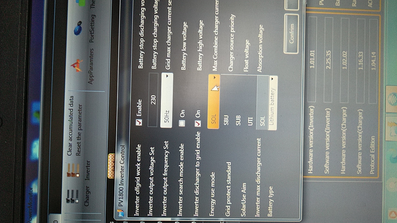 Práveže také nastavenie na displeji nemám.. rovnako ako to offline working on a offgrid, ongrid enable disable.