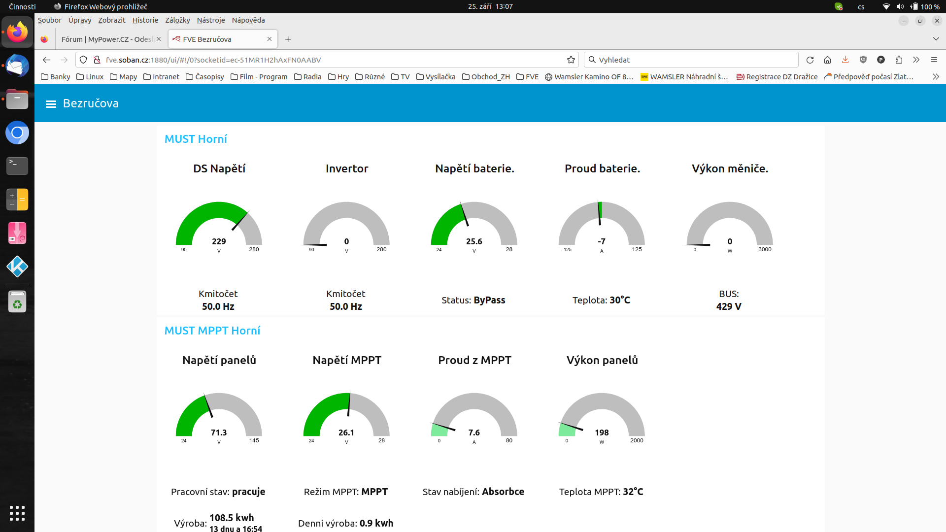 Tak jsem zase zprovoznil sledování a ovládání měničů.