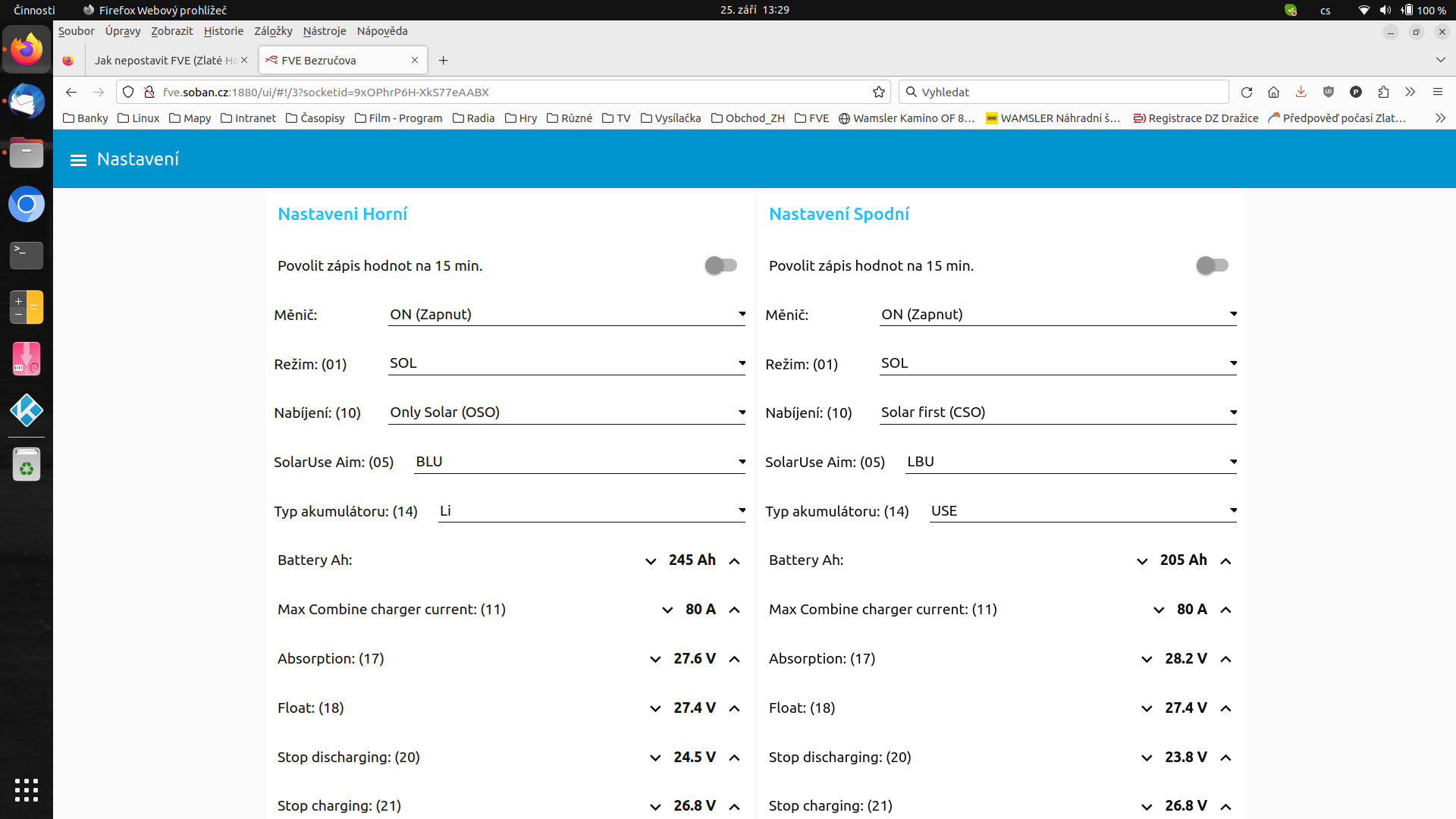 Jinak ty musty můžu ovládat odkudkoliv i cokoliv nastavit - přes ESP32 jakýkoliv registr, přes node red jenom něco - režim a nabíjení. (Nebyl by problém nastavovat vše.)