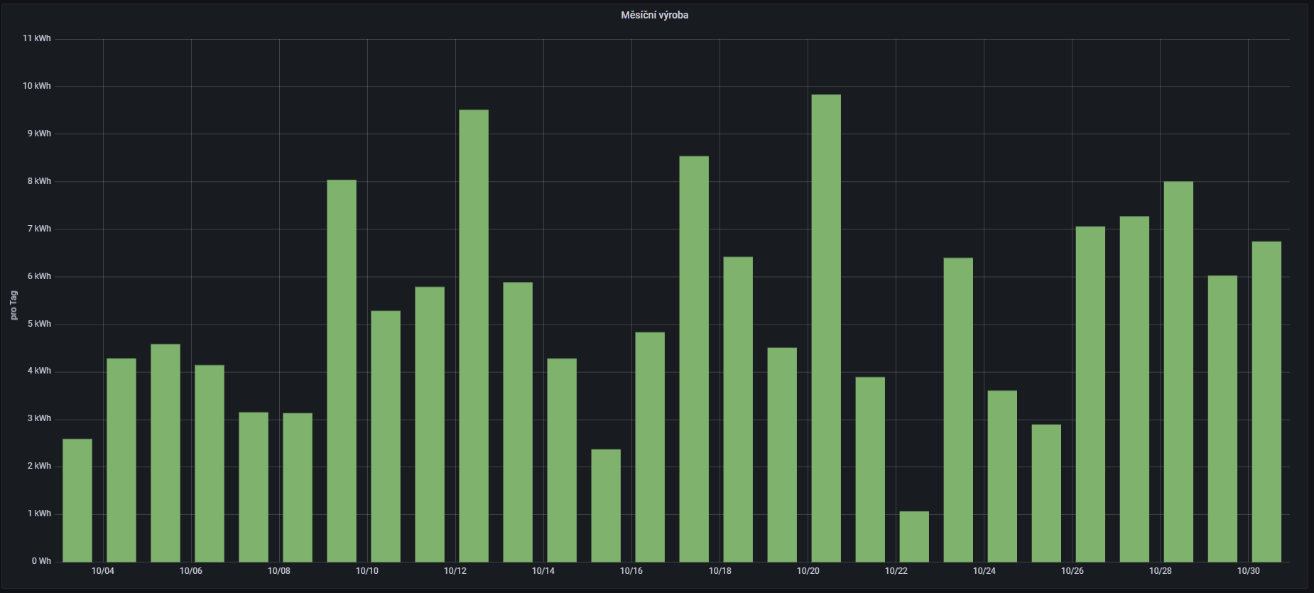 Mít ty panely nahoře, tak nevím co s elektřinou, takhle jenom 3,5kWh z 5,6kWp..