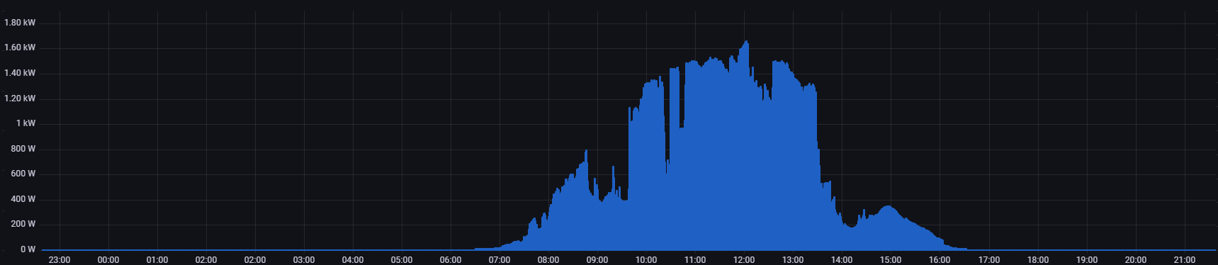 u nás dnes asi nejak tak, že z 10kwp ( ten východný string môžem kľudne odpustiť pretože hmla... ) prišlo asi 22kw. Takéto chovanie pretrváva už asi 10 dní. Batérie som nedobil na 100% ani nepametám, ale stále si to ide ostrov