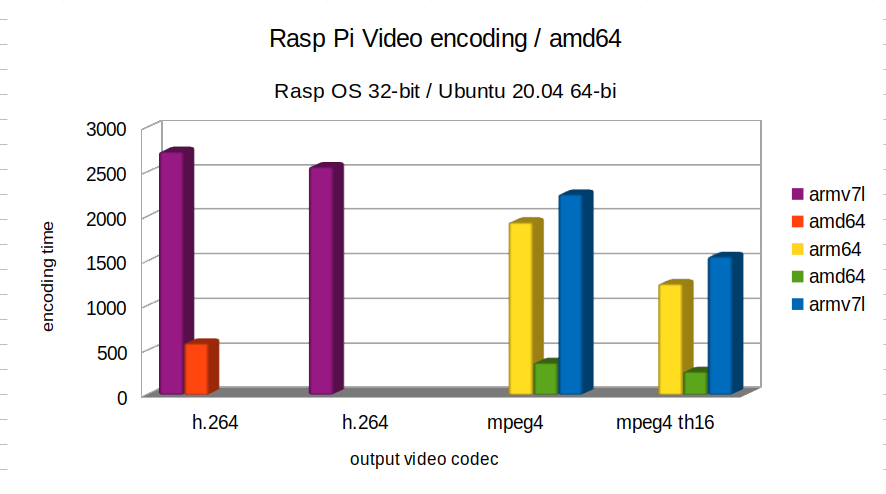 v Raspbiane 32-bit a Ubuntu 20.04 64-bit na Rasp Pi 4 / 8 GB / 2.2 GHz.