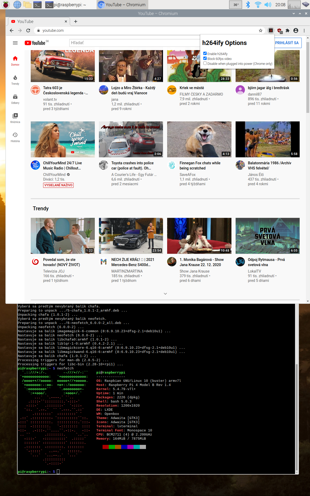 Ešte je dobre zakázať 60-fps videá v chromium a stiahnuť neofetch.
