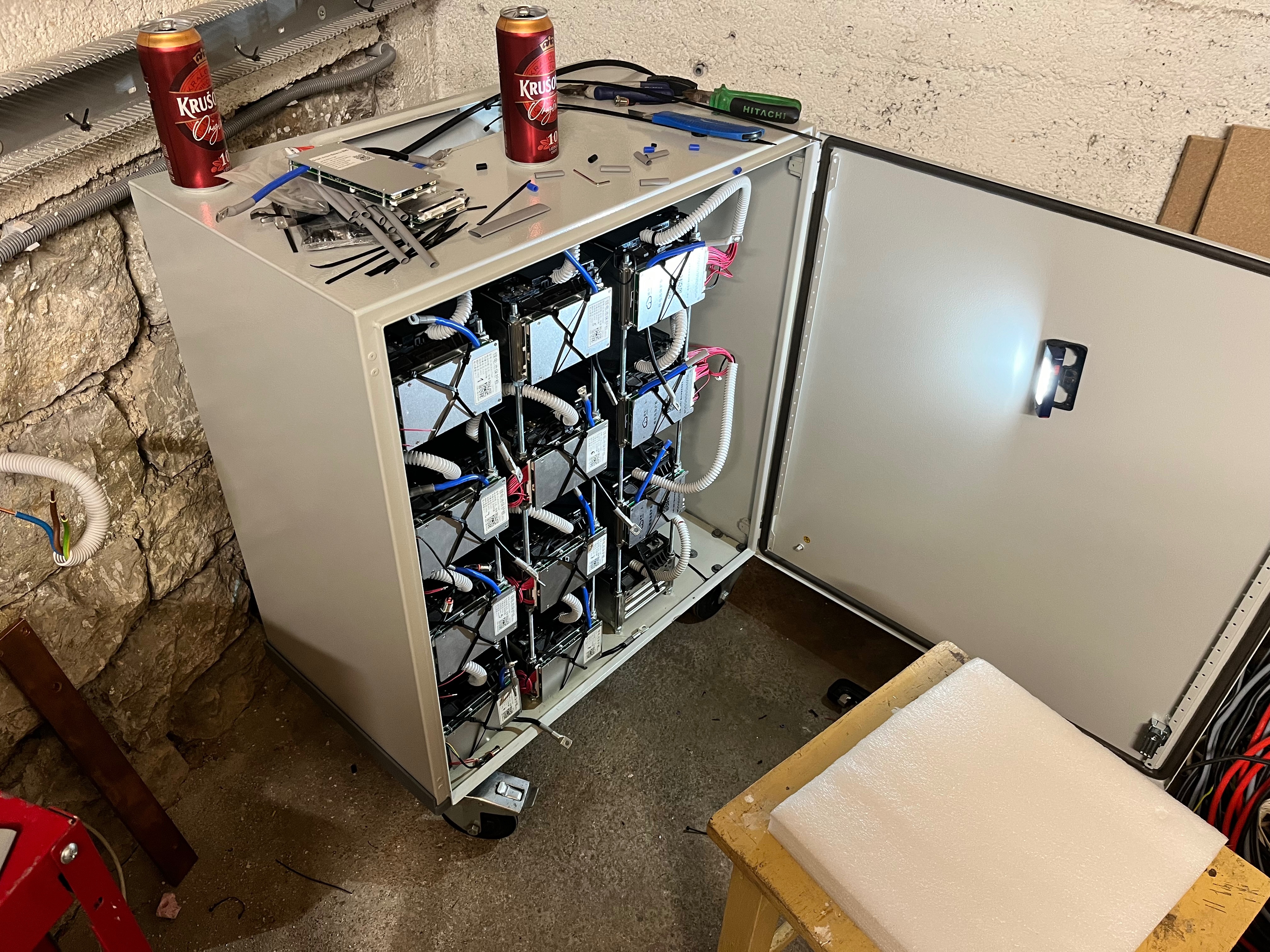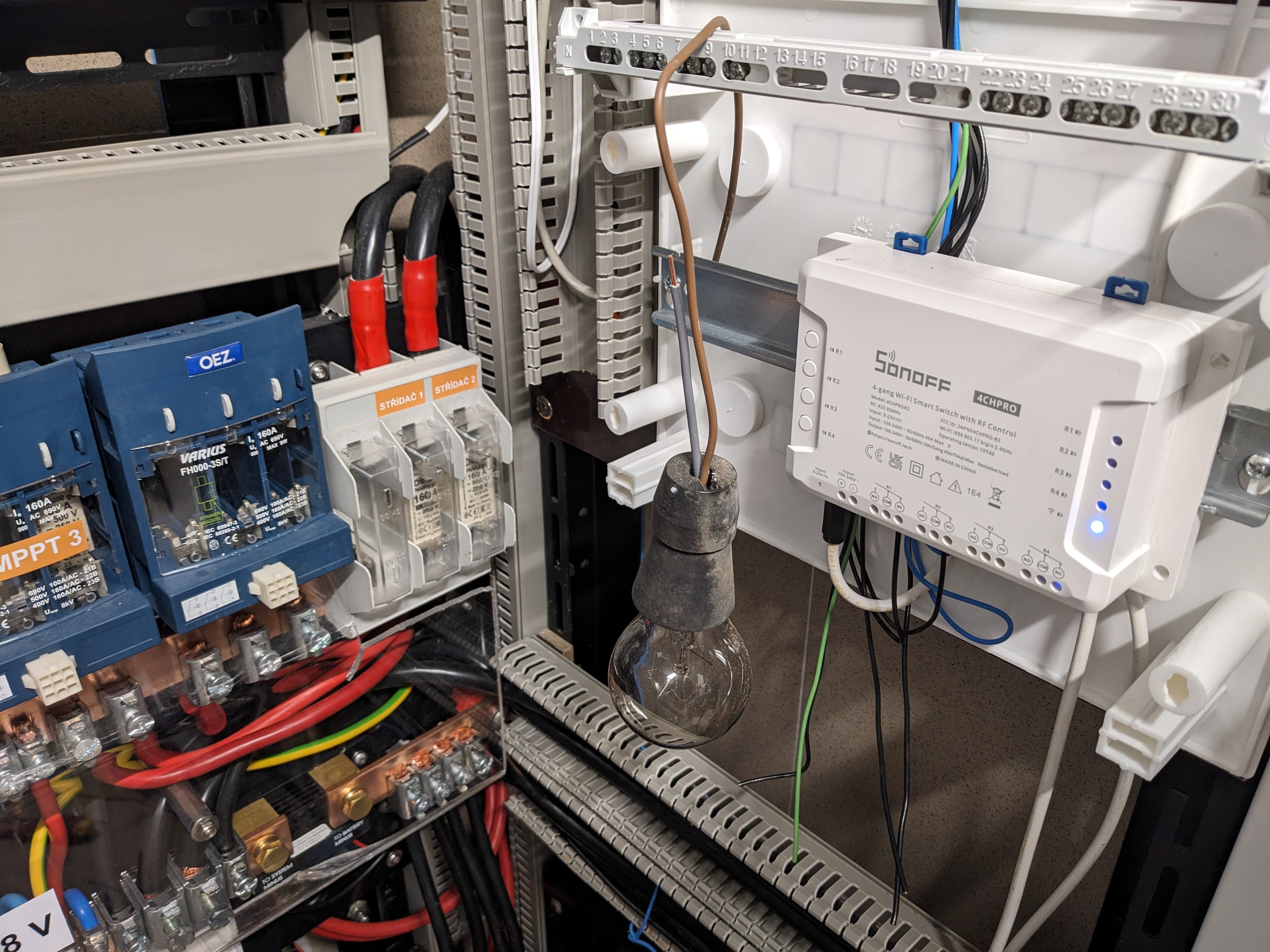 Prikladam foto rozvadzaca s baterkami..je to fotka zo zaciatku tyzdna tak uz su tam vsetky (16) baterky,len istenie tam nieje.to pride z lavej strany rozvadzaca..Poprosim nekomentovat volne nezapojene kable od bmsok vsetko je vypnute