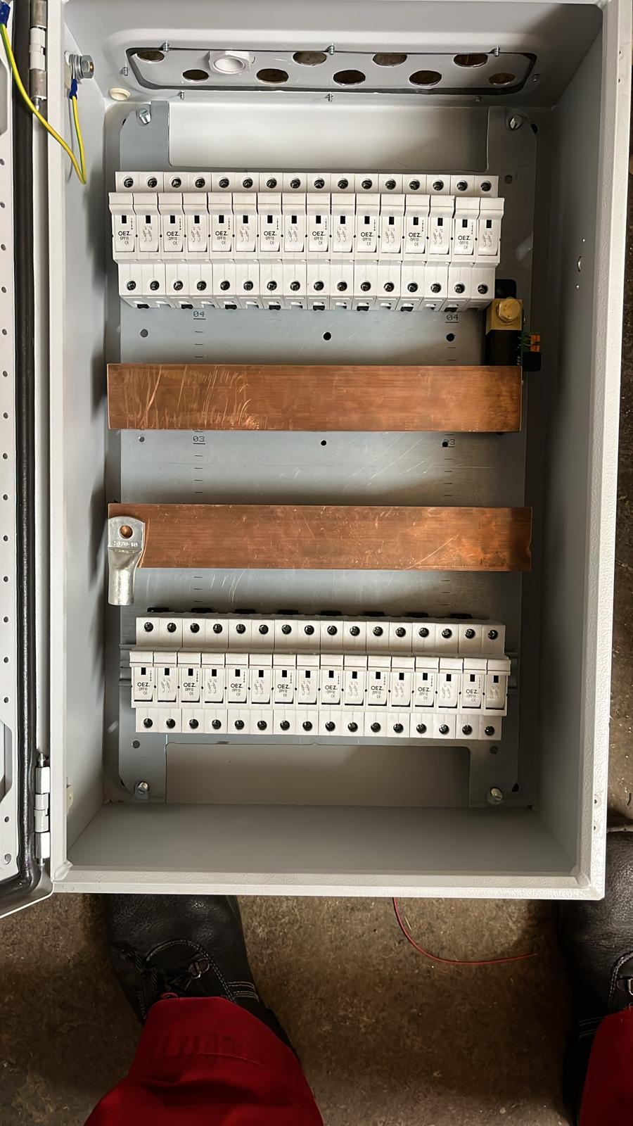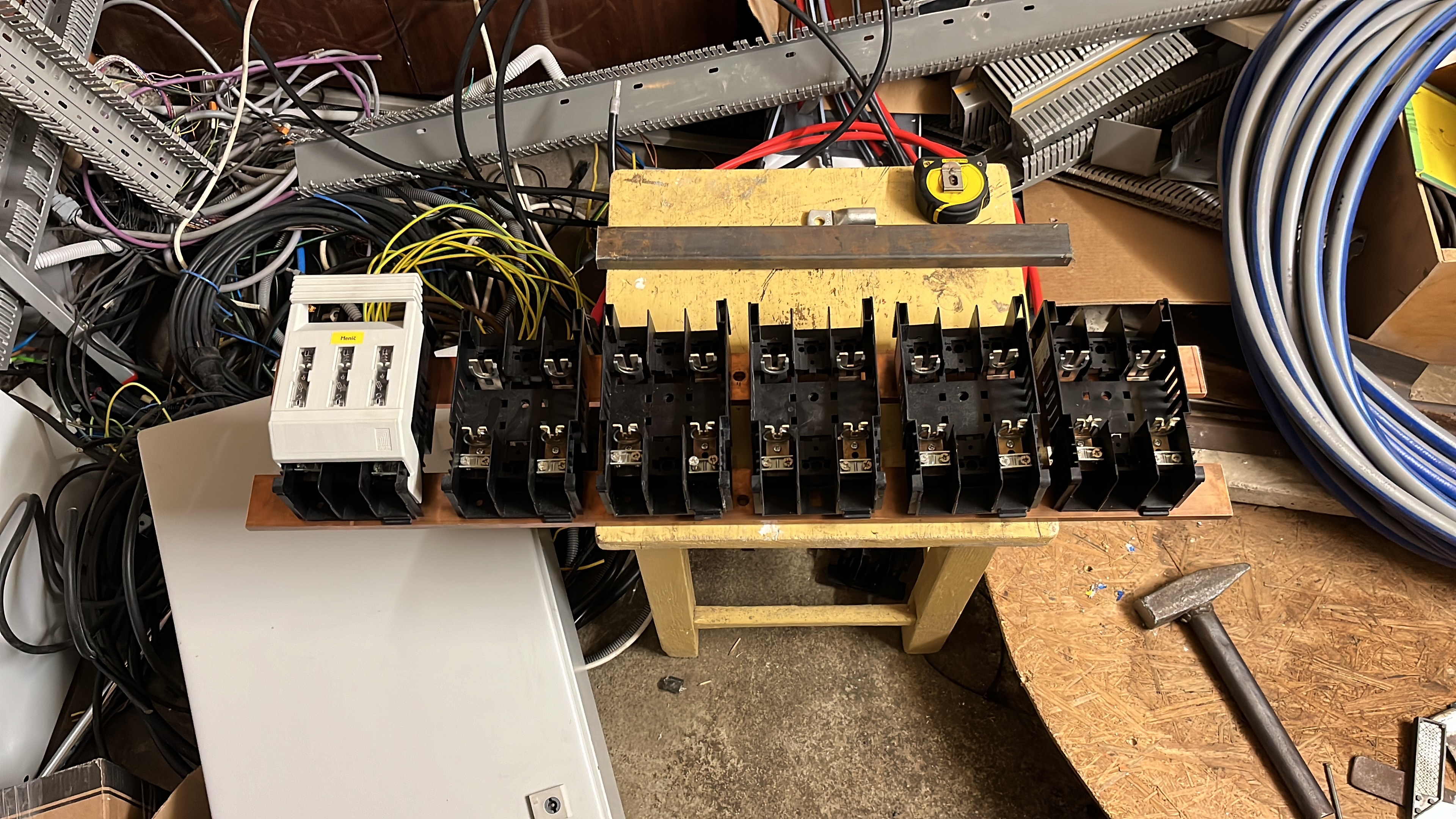 S medi se moc dobre nedela. 48V jsem pak delal na trmenove a combibox pak takhle. 2f lista spojuje pojistky s prepetovkou a pak uz kabel na jistic. Tu bych to udelal spojit vzdy po 4 stringach spojit listou a pak kabel. Na druhou stranu to vypada super, jak z nejake lokomotivy