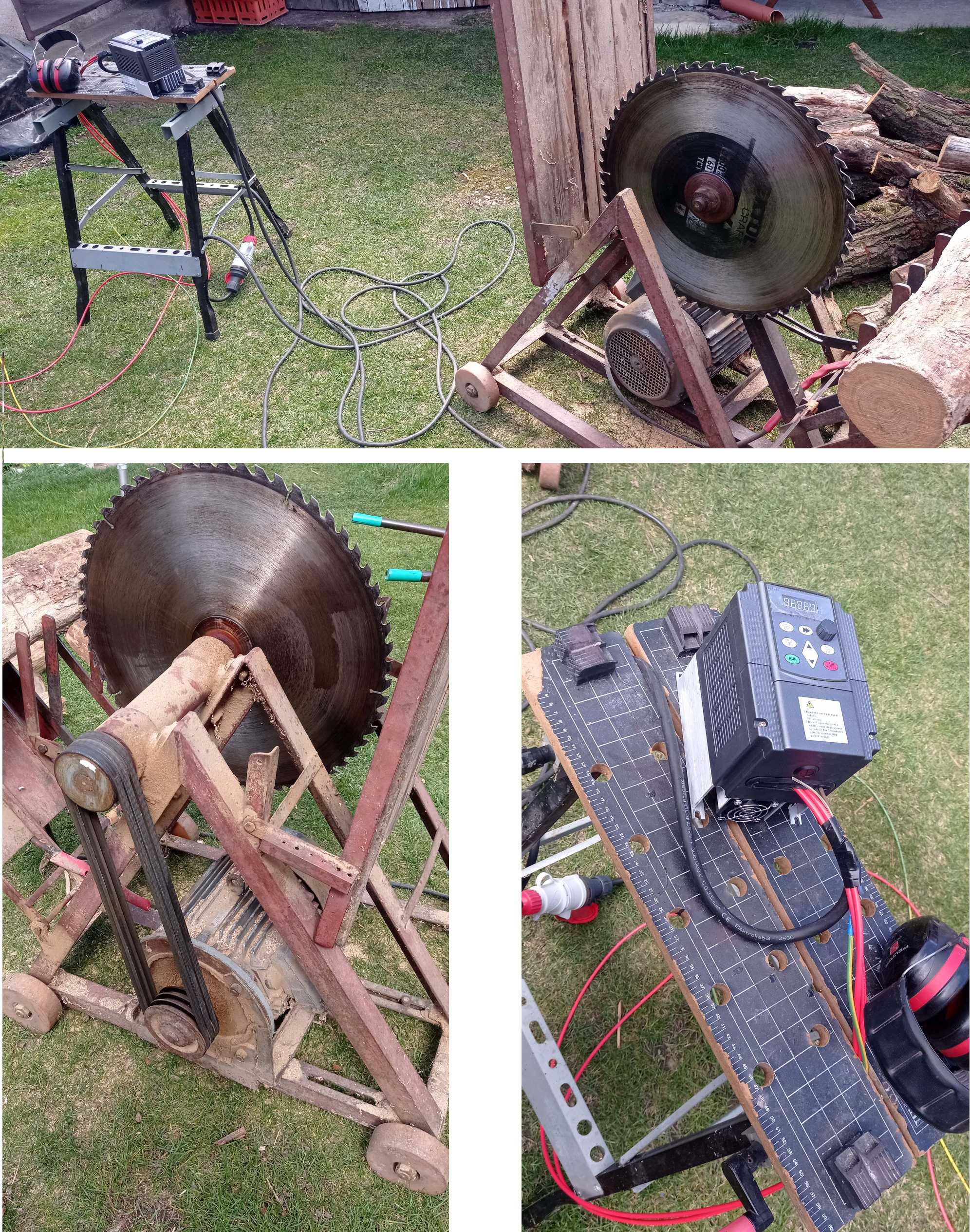 Vyzkoušen měnič DC/3xAC s cirkulárkou. Funguje to jako s DS. Ale asi to není pro každého. Řezat jde jedině, když je jasno. Přijde mráček a frekvenční měnič padne do chyby nízkého napětí. Taky tam mohl Číňan dodělat nějakou regulaci, kdy by při poklesu napětí třeba snížil frekvenci aby motor trochu odlehčil. Návod má několik stránek s nastavením všeho možného, tak třeba se tam někde něco takového schovává.