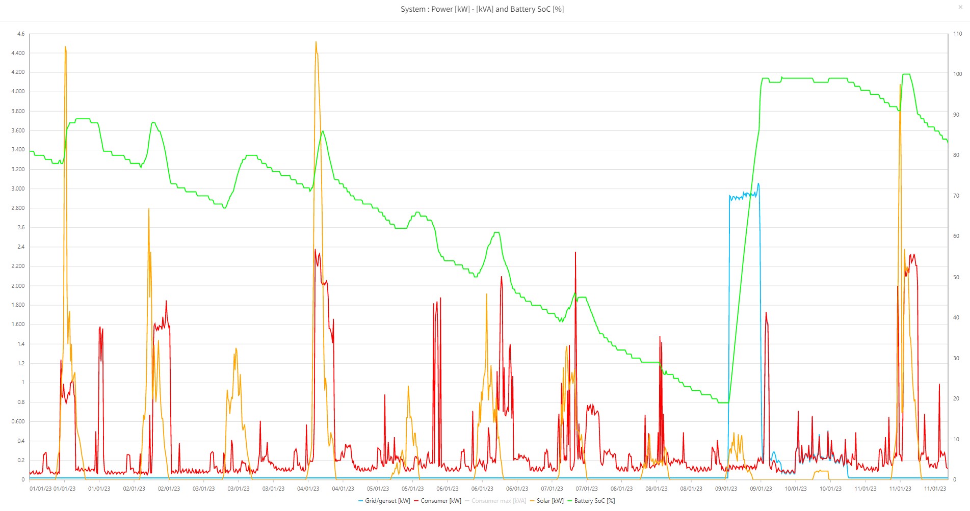 5,4 kWp JJZ 4deg,1,8kWp JV 24deg, do 13.8.2022 bylo 3,6 kWp, MPII 5k, Victron MPPT 250/85-TR, aku 9,45 kWh Lion 15S, BMS 200A, Smart Shunt 500A.