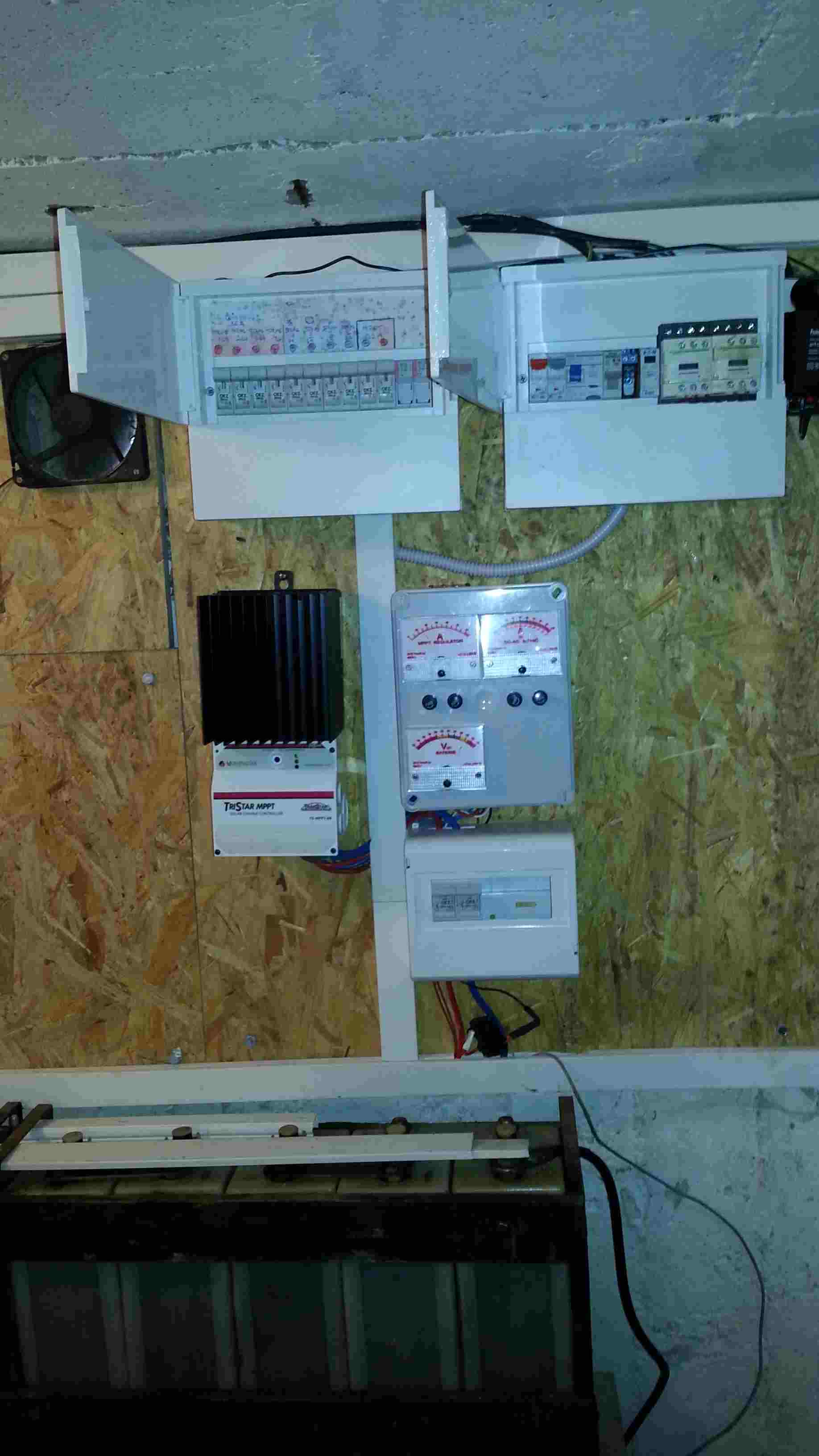 15 kWp JJZ + 3x Tristar MPPT60 + Victron 150/100 + 48V LiFePO 850 Ah + UPS 8kW (MPP-Solar 8048 LC) + 4 x nabíječka 1,2 kW (DELTA) Start: 2012