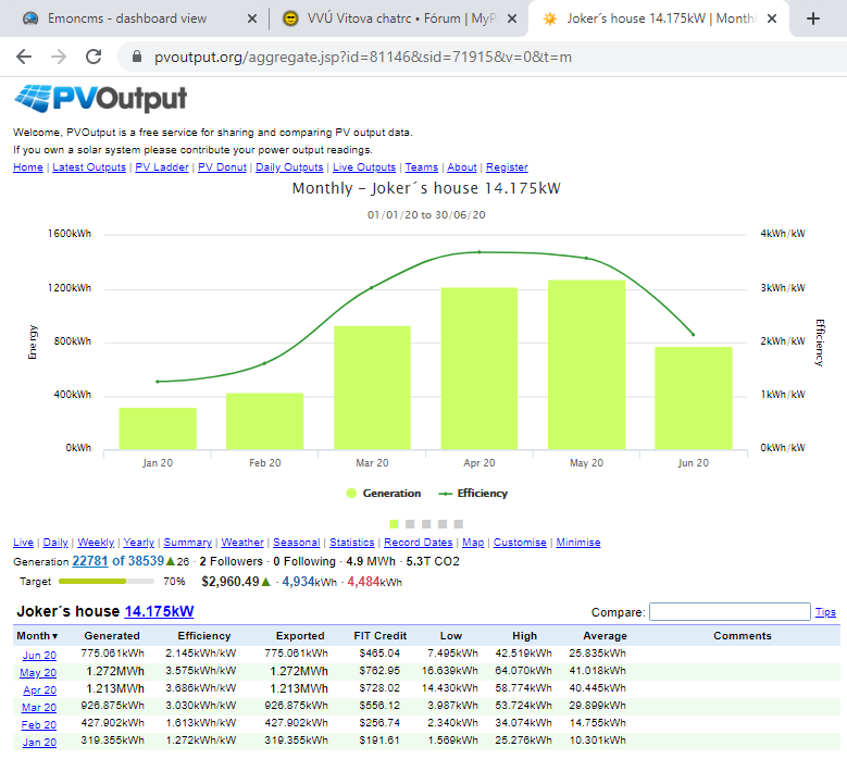 Pekne ti to fungujeVitek píše:Hoj mám za sebou první polovinu roku, kdy monitoruju reálně. během roku došlo k navýšení výkonu na panelech.