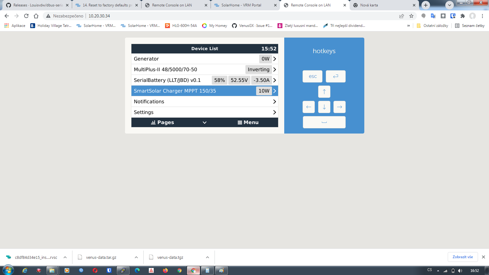 Tak jsem udělal reset/update na 2.84 přes SD kartu a pak znovu nahrání přes SD kartu knihoven na BMS. Na první dobrou všechno naskákalo. Aby to nebylo jen pozitivní, tak pak se odmlčel regl, pak modbus. Reboot a chyběla BMS, reboot a vše je na místě. Nevím moc co se tomu nelíbí, ale asi to bude to hledání BMSek na těch USB portech a bylo by lepší regl připojit na vnitřní ve direct port a hold objednám kabel. Teď to drží, tak uvidíme.