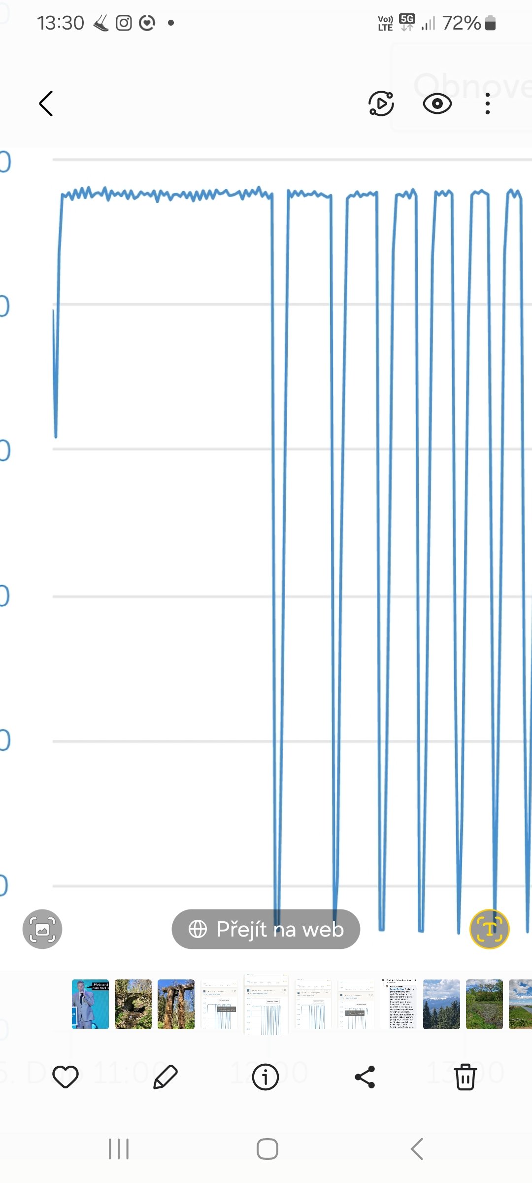 Na tom mým grafu je vidět, jak se doba práce mĕniče naplno zkracuje a snížení výkonu je častější.