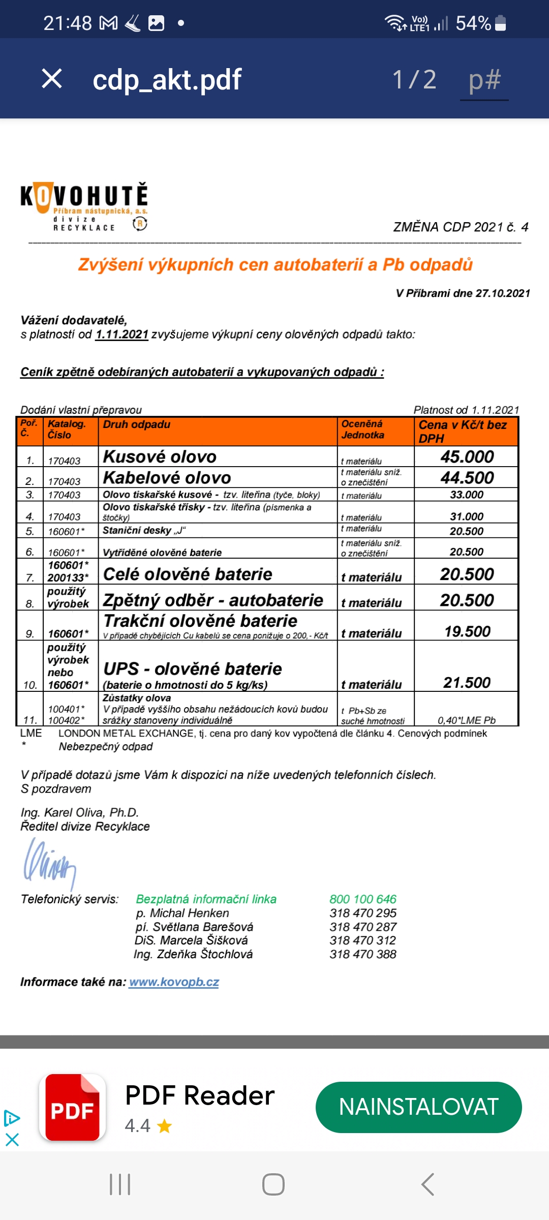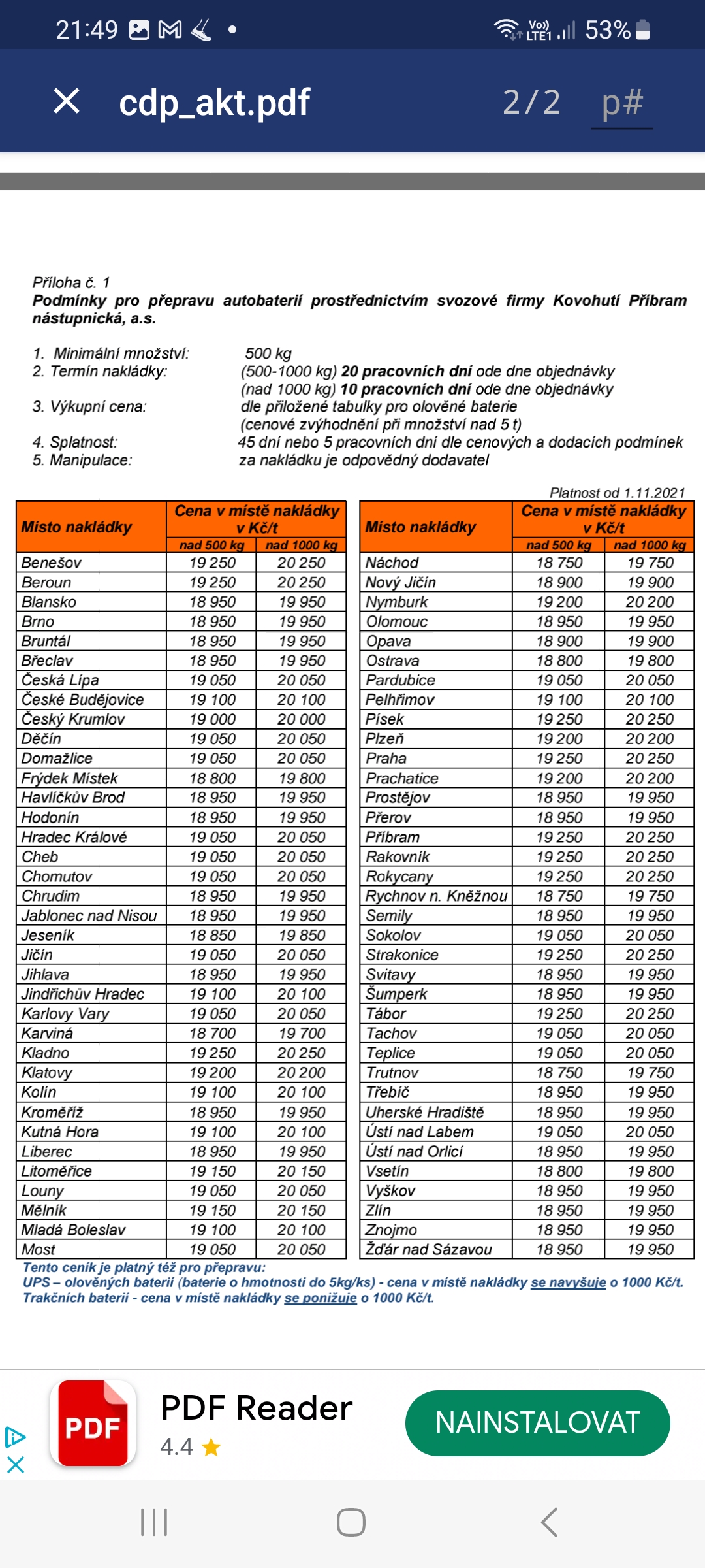 vanilka píše:Tak to si spletl podruheFranta2776 píše:Spletl jsem.se dávají 20kč.. Od 26.1.2023 je snizena vykupni cena olova viz.muj predchozi post