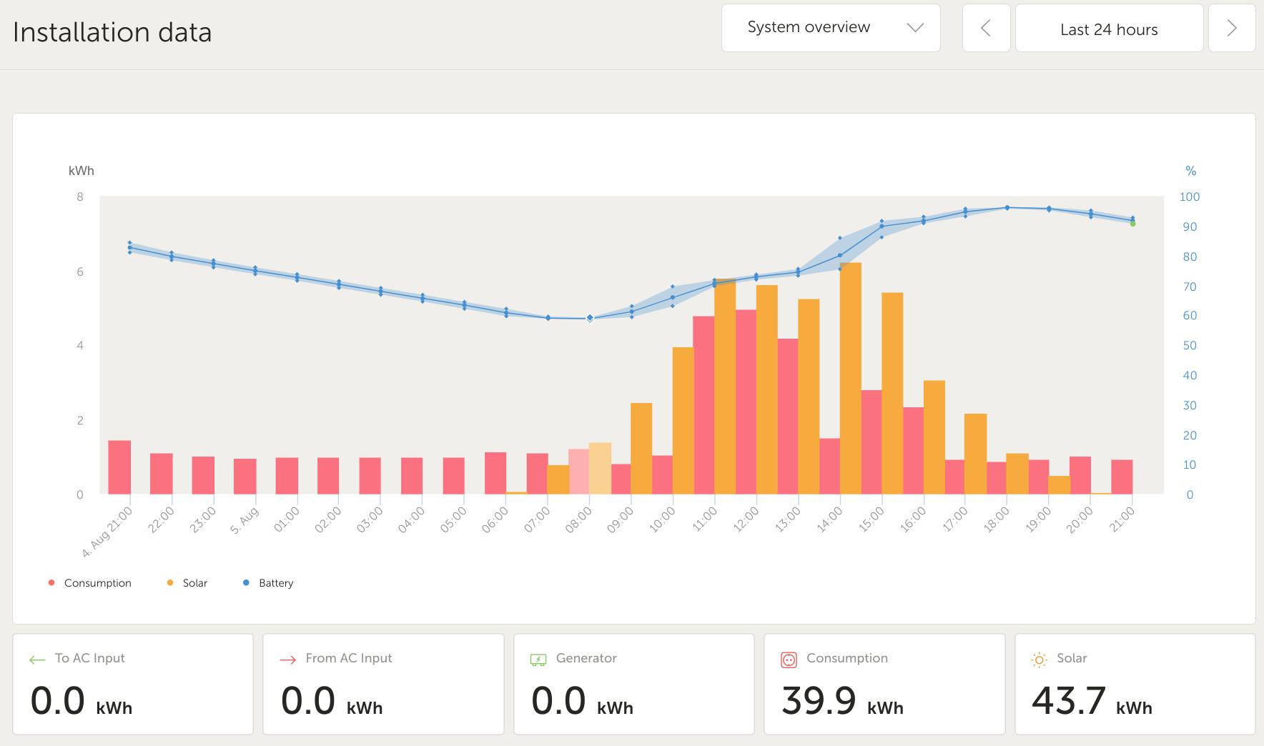 Dneska jely všechny stroje pračky,sušička ohřev TUV,trouba,vaření a 2 hodiny jsem vysával velkým vysavačem auta a baterie mají pořád dost šťávy.Určitě minimálně 2 takové dny vydržím.Jak říká Vítek volovo patří do kanoe:))