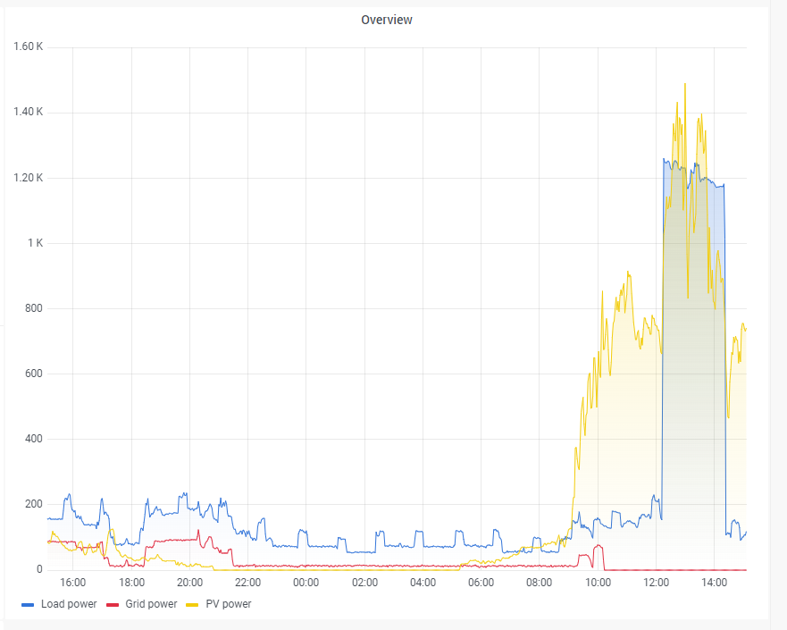 Důležité je že baterka se pravděpodobně dnes dobije a měnič rodičů mohl vyskočit z bypassu.