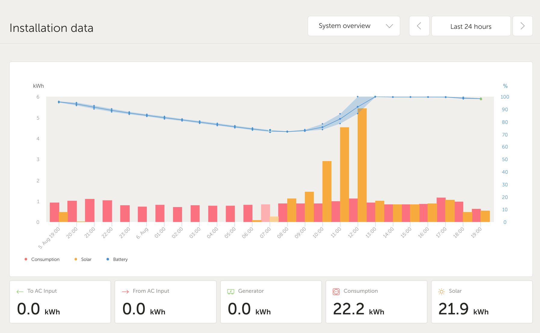 Já jsem to vyřešil,že při poklesu kapacity baterie se automaticky zapne dobíjení baterie a po nabití na určitou úroveň zase vypne.Pořád mám jednu část jako zálohu na drobné spotřebiče.EZS,EPS,CCTV a světla a mrazáky.Zbytek se na tu dobu přepne na DS.Jinak to počasí stojí za starou bačkoru.