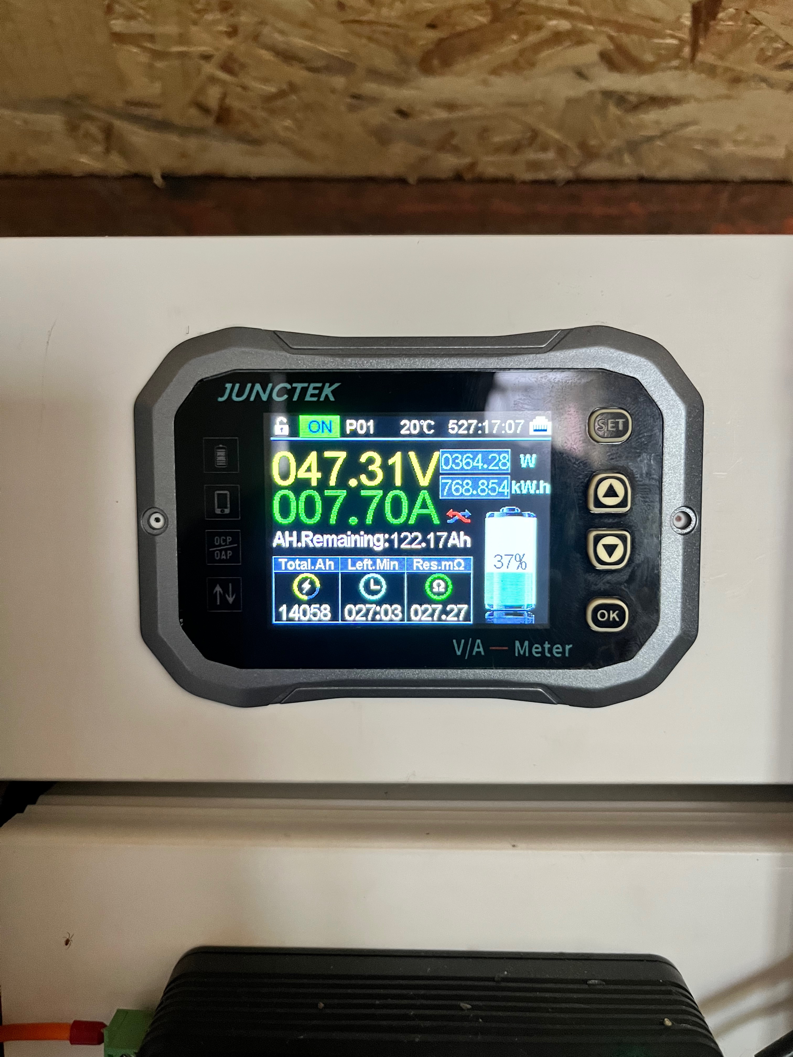 9,2kWp JV 45°, 4,6kWp JZ 45°, 2,3kWp JV 90°, 2 x Victron MP II 5kVA, 3 x SmartSolar 150/70, Smartshunt, Cerbo, 16x280Ah + 16X300Ah + 16x300Ah LiFePO4 + 3xJK BMS.