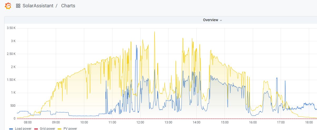 U nás dnes zatiaľ 15kWh, baterka už je plná, nabíja sa bojler. Po dvoch dňoch výrobou dokopy 11,5kWh, takže ja som spokojný