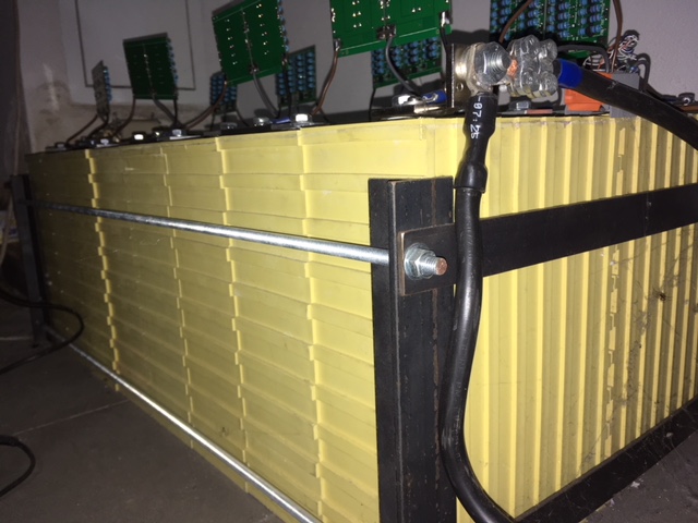 Pěkná fotka. Jen bych dal mezi stahovací plochace na čelech baterie nějaké desky (například lamino). To aby se článek nevyboulil mezi stahovacími železy. I když je otázkou, jak je vyboulení článků v FVE reálné, když jsou zde menší proudy než např. V eaute.