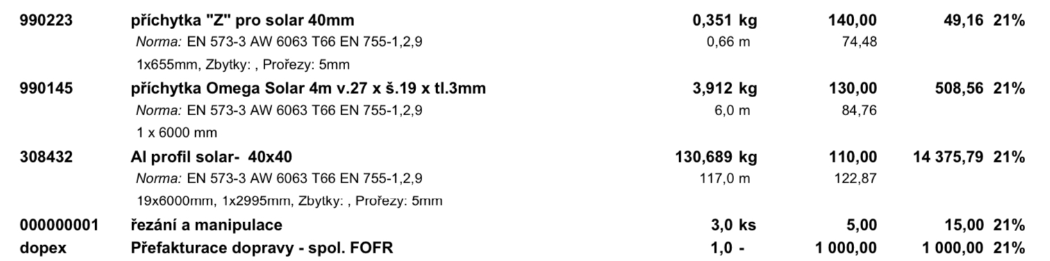 Dodavatel hliníku byla Alupa.cz a spojovací materiál Killich.cz