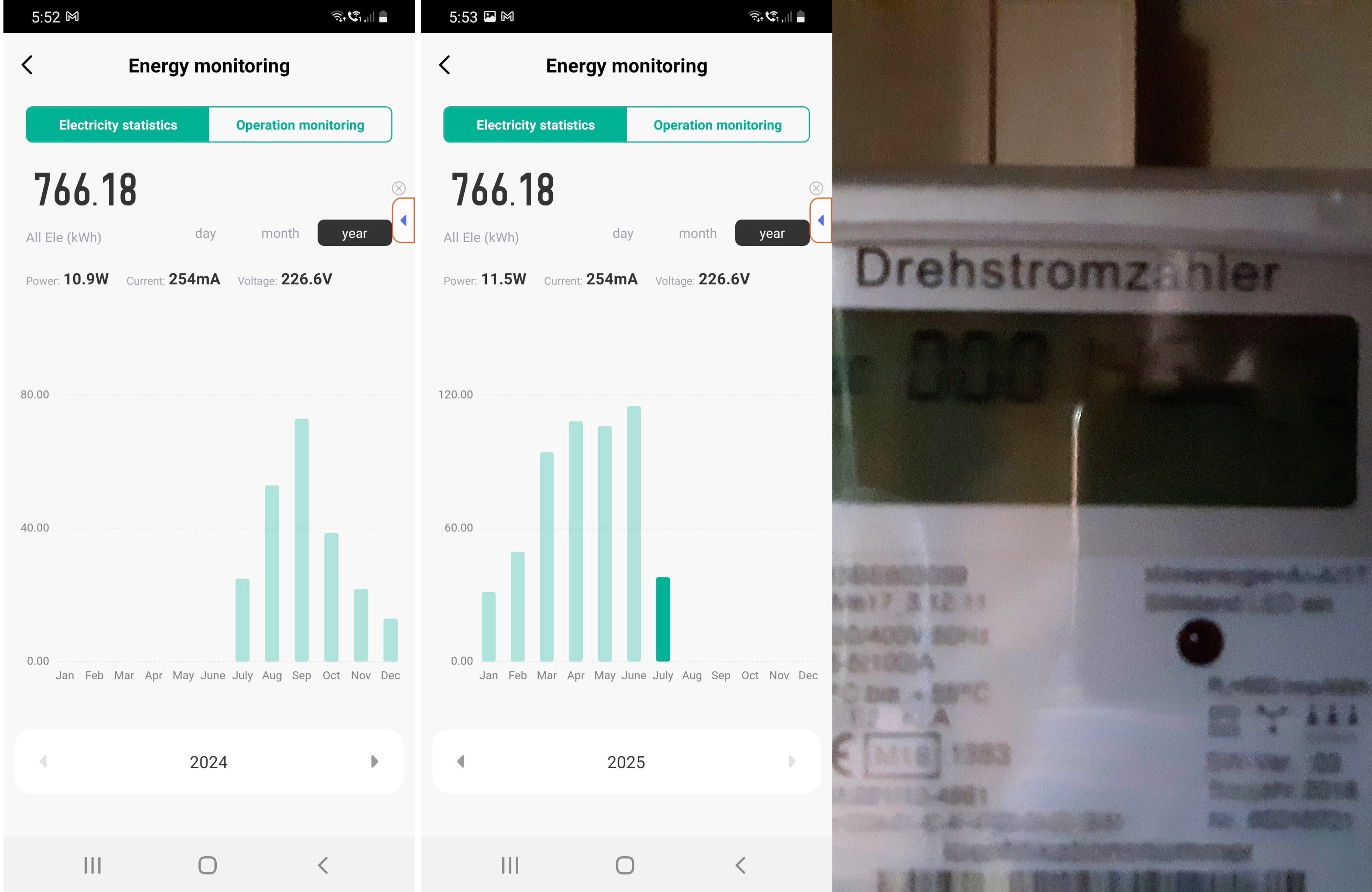 (doplněné o měření Tuya v zásuvce, Shelly, jeden neznačkový měřák AC230V u jističe - s maximálním rozdílem +/- 8,4kWh)