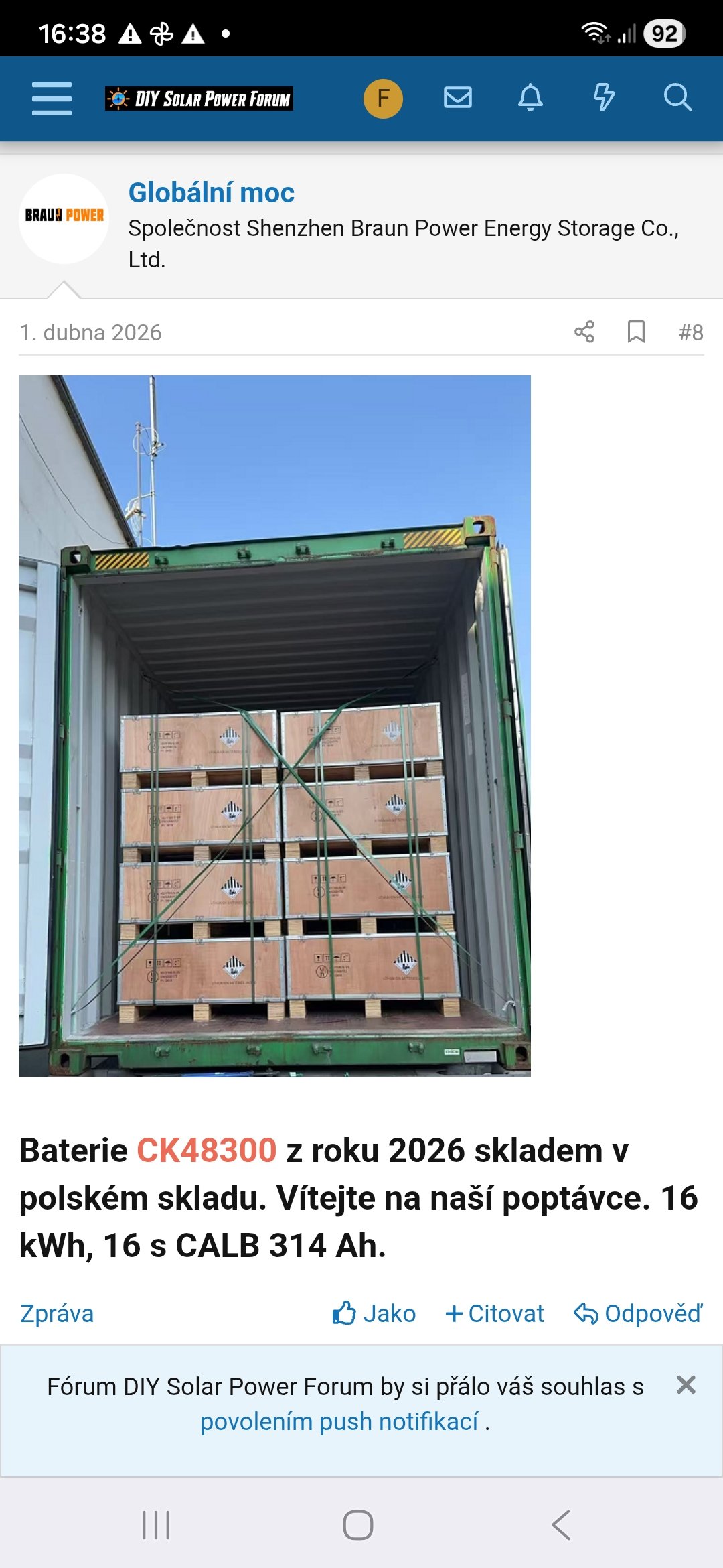 Ve fóru se diskutují aktuální ceny LiFePo4 aku, především nabídky z EU skladů jako DocanPower a Icol Liu na Alibabě. Uživatelé sdílejí zkušenosti s nákupem, doporučují kontaktovat prodejce kvůli individuálním cenám a varují před riziky nákupu z neověřených zdrojů. Zmiňují také možnosti osobního odběru a platby na místě, což zvyšuje bezpečnost nákupu.
