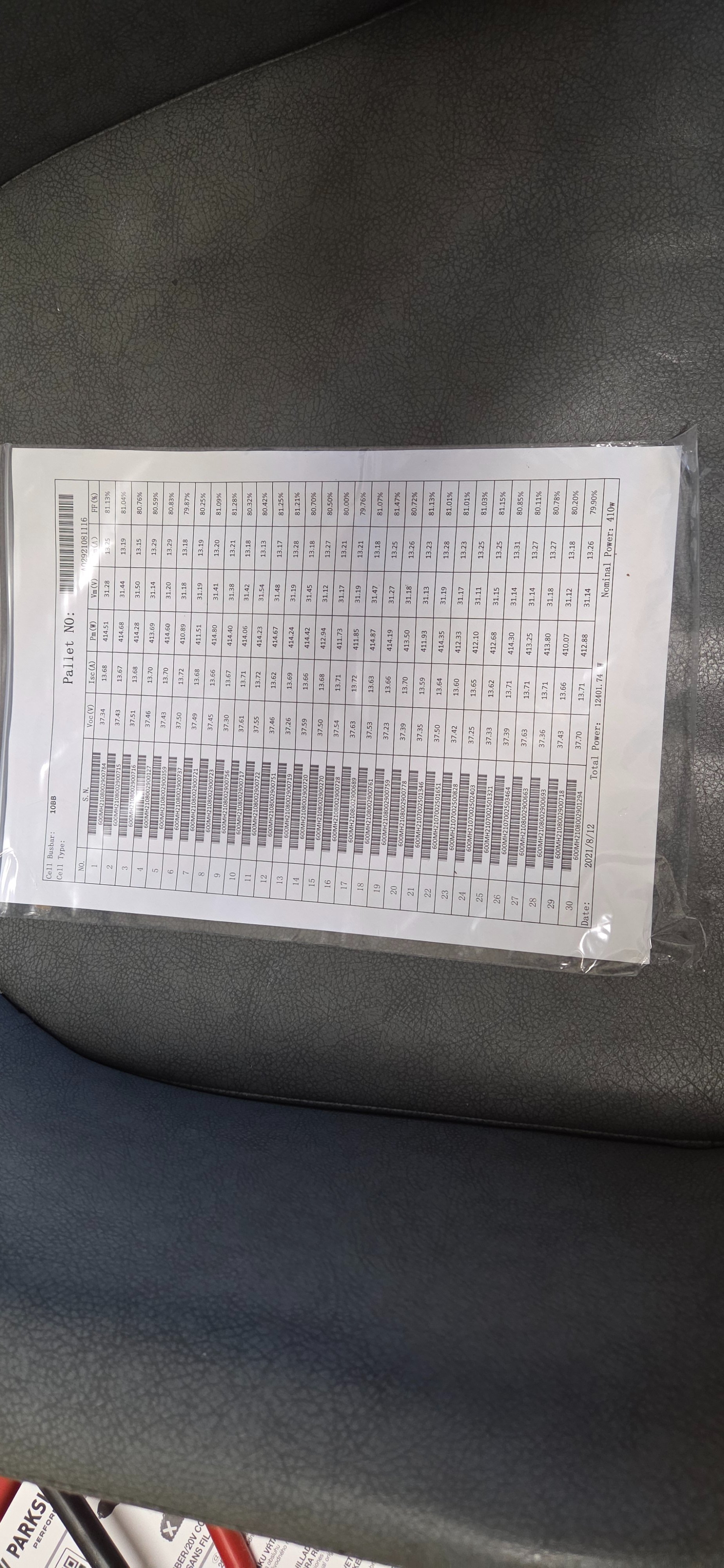 Toto je na paletĕ,protokol mĕřeni každého panelu