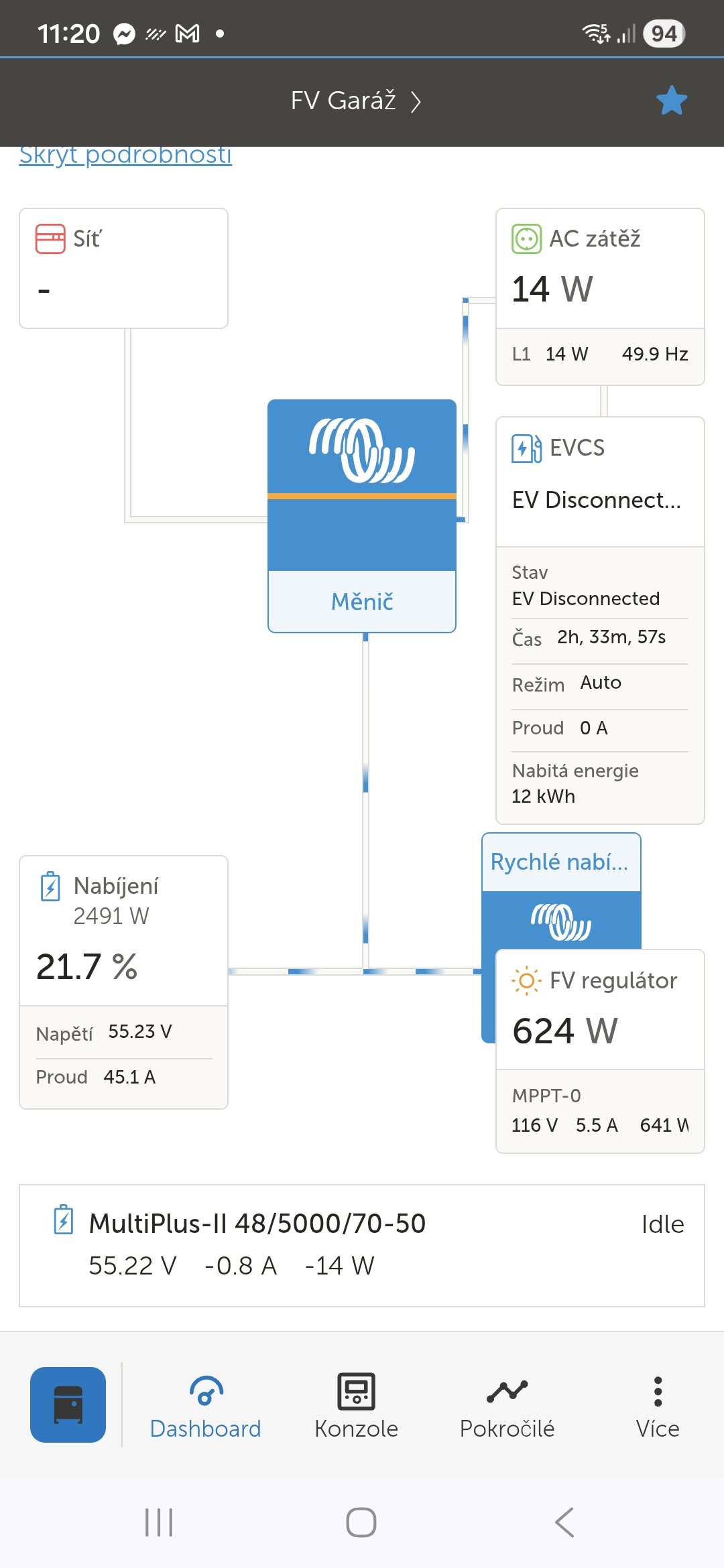 32540Wp, 90ks vakuové trubice jihozápad, (Lifepo4 17S 520Ah, trakční gel 800Ah), Axpert Max 7200VA, Easun Isolar 5500VA,Multiplus 2 48/5000,MPPT 150/85, 150/100