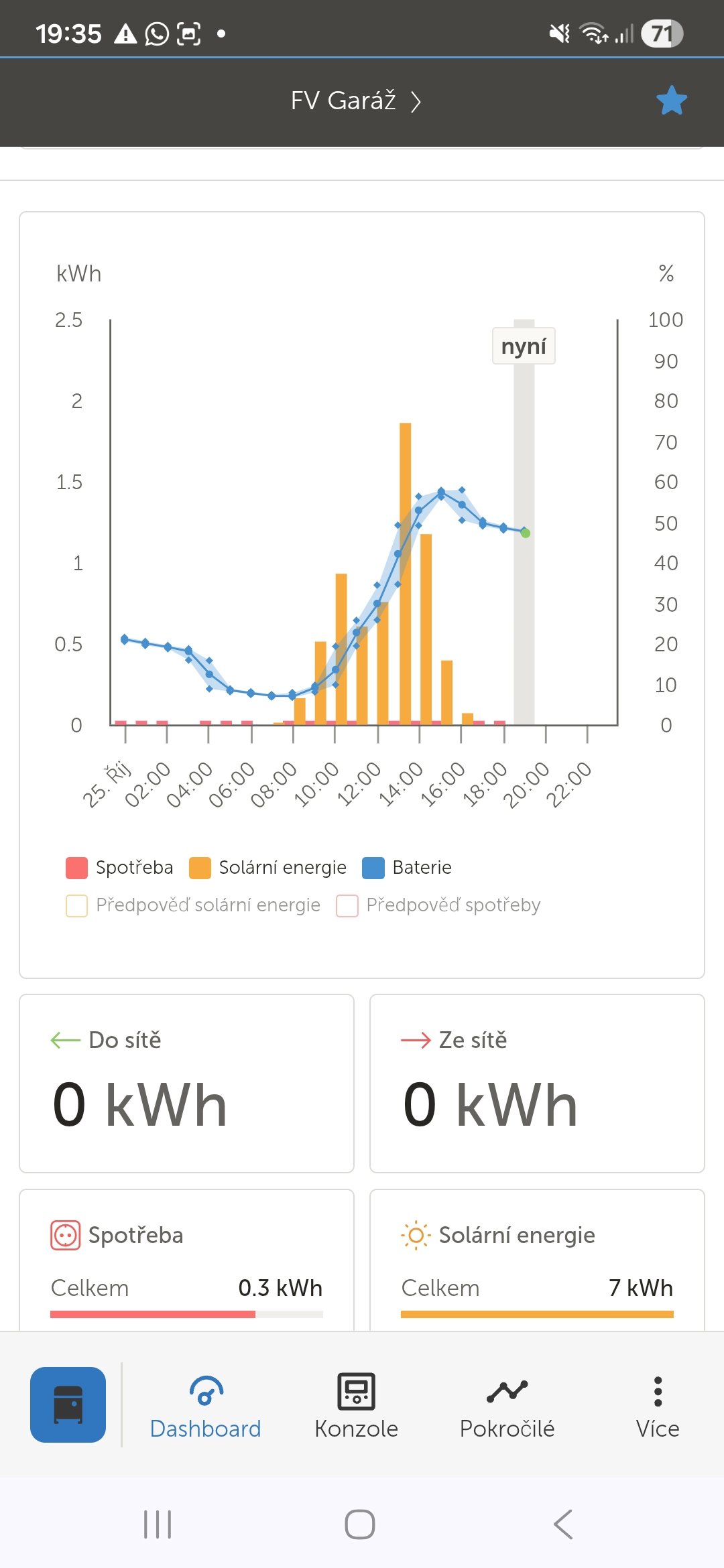 Zatím mám připojených 23kWp a nevypadá to, že by FV doŝel dech.Topim, vařim,svitim i jezdim na FV. I při zatažené obloze a difuzi z toho lezou výkony okolo 3kW, což je zajímavý.