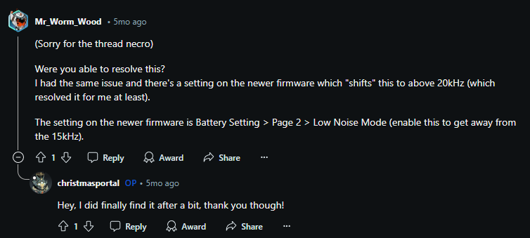 Podporu som uz kontaktoval, zatial cakam na odpoved. Ten LOW NOISE MODE som vygooglil aj ja. LOW NOISE MODE v mojom aktualnom firmware nemam, mozno mi ho nahraju a objavi sa to tam.