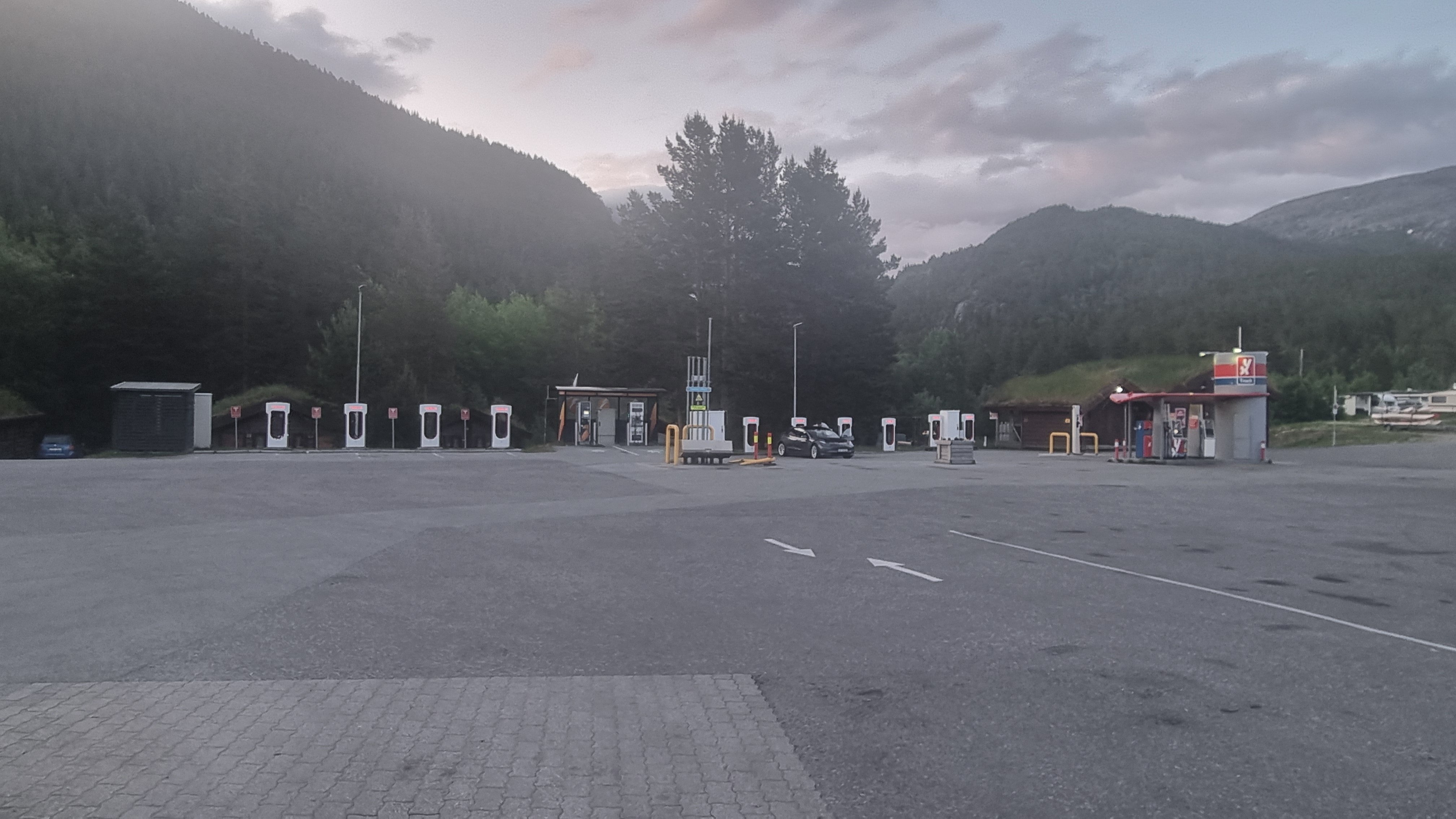 Tak nějak bĕžnê vypadají čerpaci stanice v Norsku i za polárnim kruhem.1-2 stojany na fosil a zbytek EV