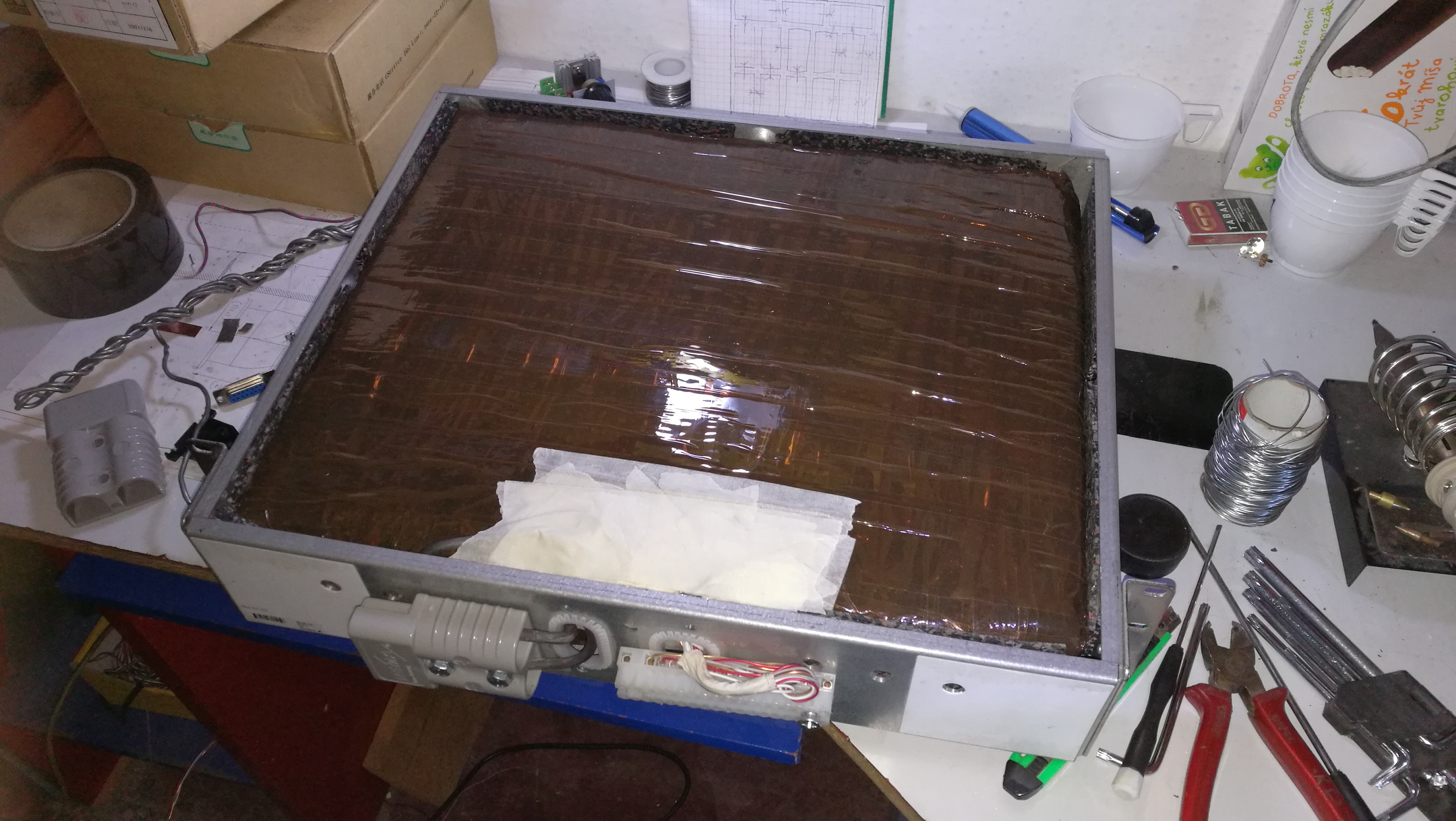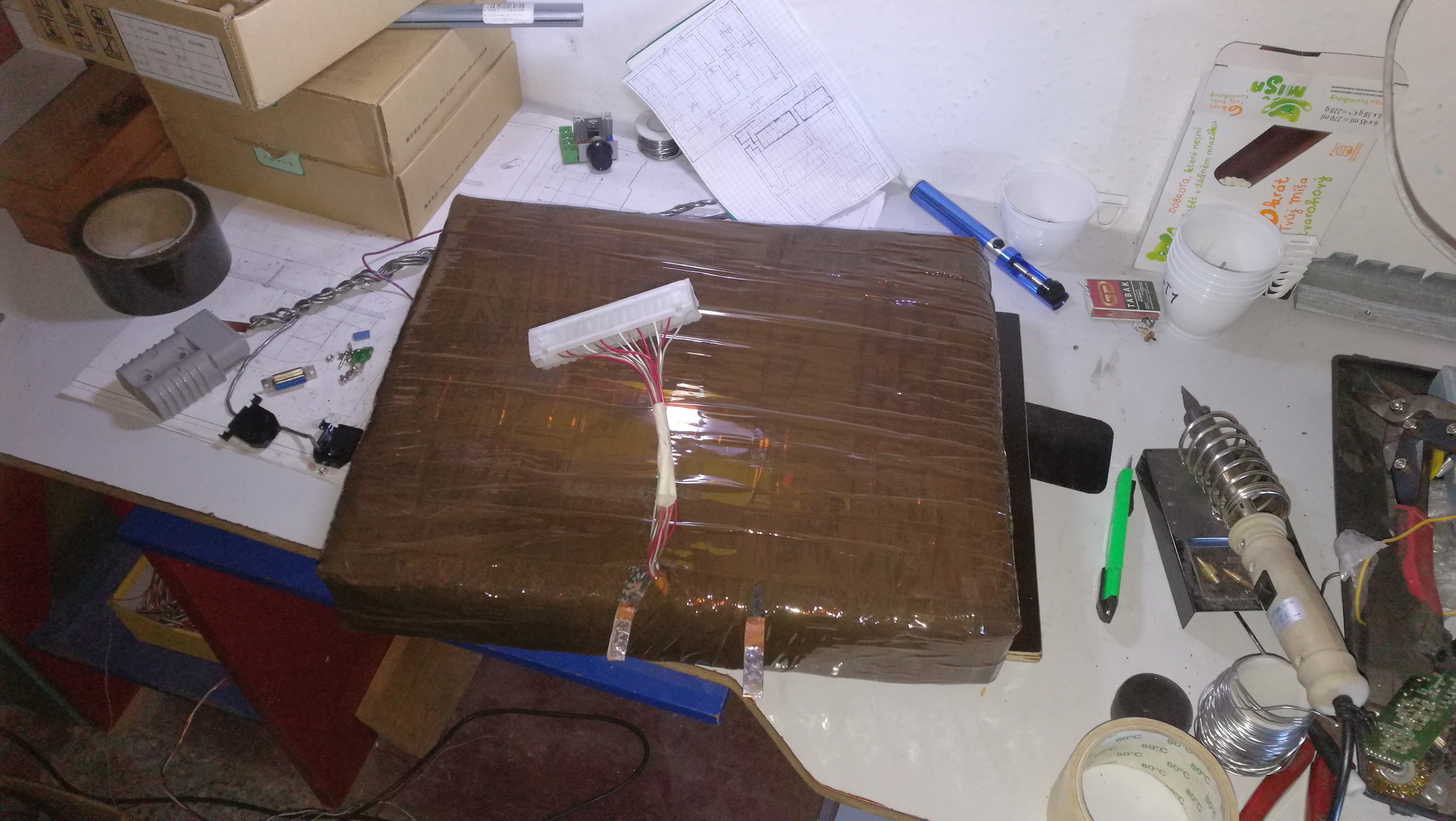 Tu menšia fotečka,ako som to dneska ukončil a presne sa zmesti do plechovej bedničky. Však po dokončeni zverejnim,bo to bude prenosna 52v bateria.
