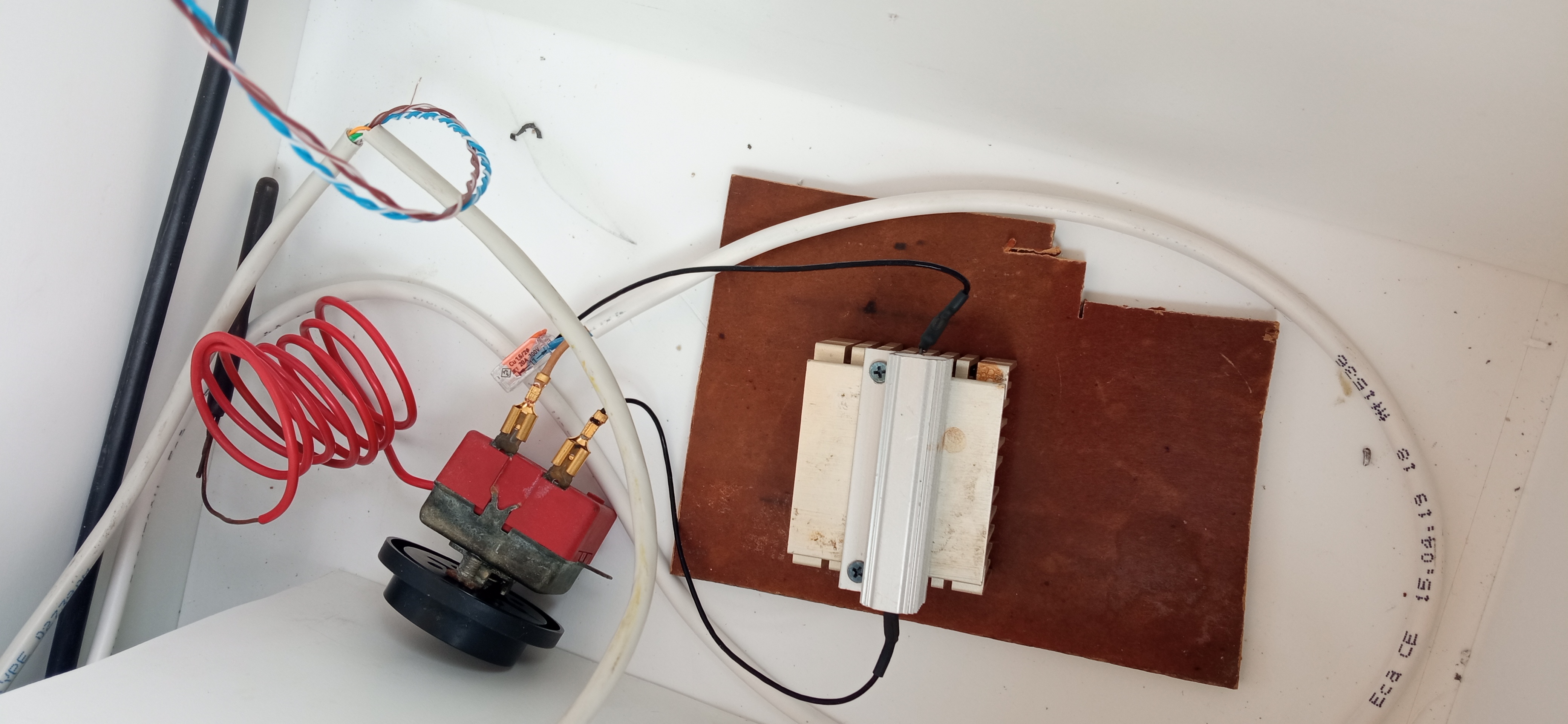 Ohrev som poriešil 50W ohrevným telesom z Dome kamery na chladiči z CPU. Spínaný je obyč. termostatom z nejakej rúry na pečenie alebo čoho bol. Rozsah 5°C vyššie. a Napájaný priamo z panelov. Takže pri osvite najskôr ide výkon do ohrevu ,až keď prekročí 2A ide zvyšok do batérie.