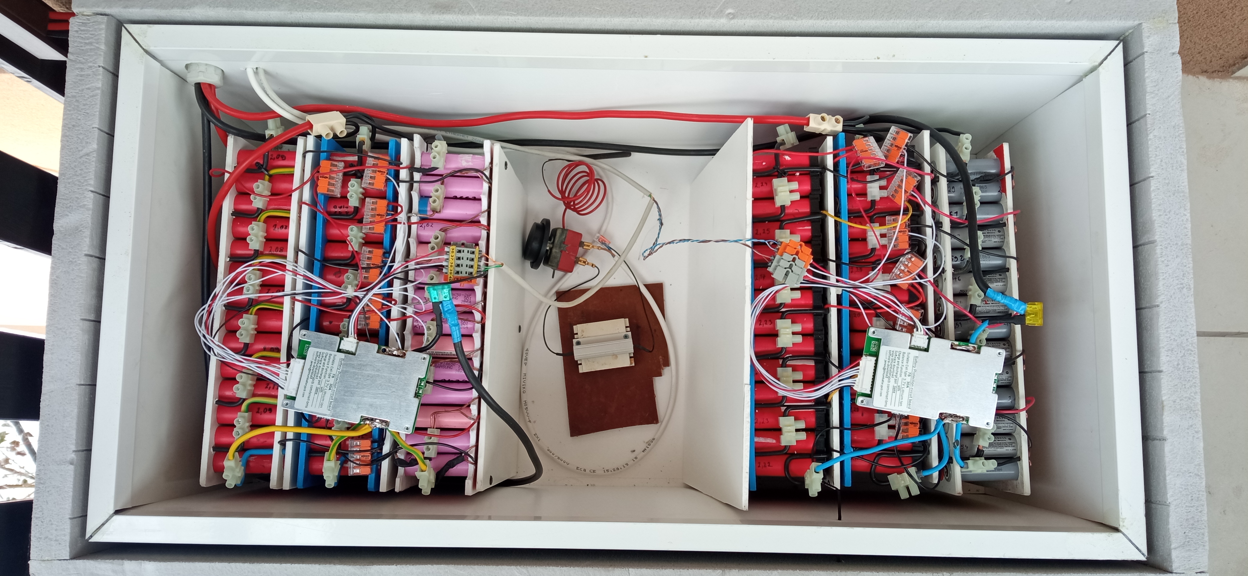 - Ty maš baterky Li v tom polystyrenovom boxe vonku... kedže boli teraz dost veľké mrazy tak by ma zaujímalo ako fungovalo to tvoje riešenie a aké teploty teda mali baterky a či si teda dorábal nejaké ohrievanie - ak áno aké. Zvažujem možnosť že by som to možno spravil tak ako si navrhoval - regulátory, meniče a baterky + nejaká bižutéria premiestniť z domu do nevykurovanej garáže. Do domu by šli vzduchom len káble s 230V z dvoch meničov + nejaký viacžilový signálny kábel a možno ethernet.