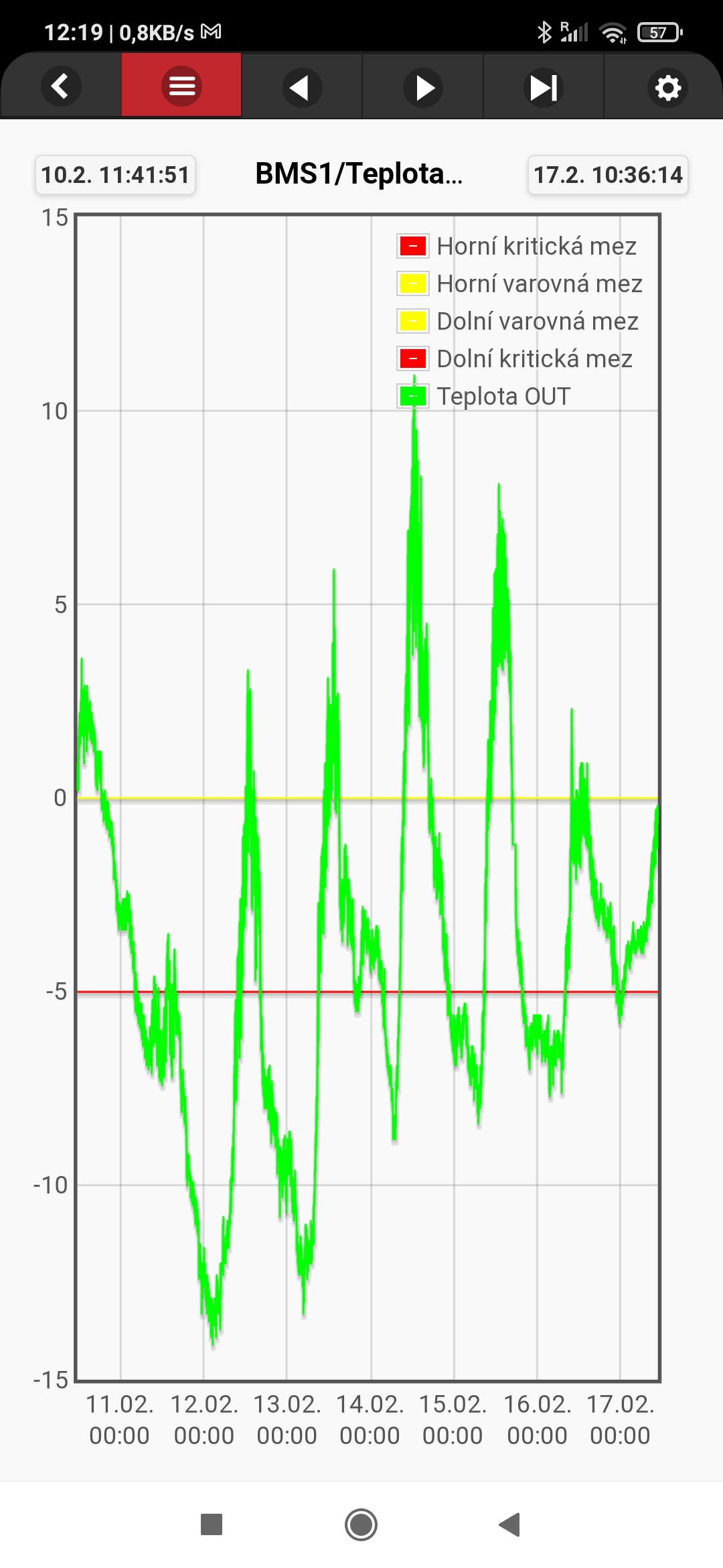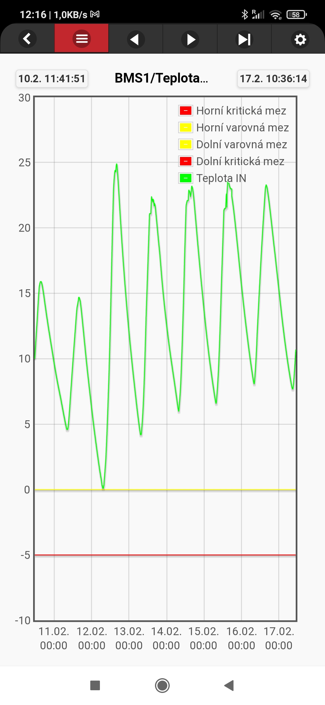 Výrez z vizulizácie s údajmi z BMS: