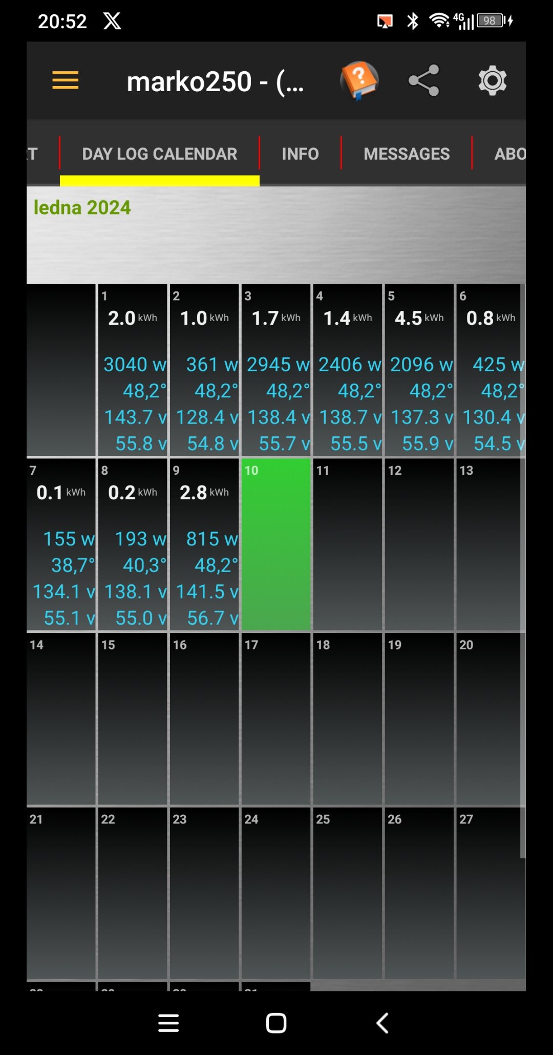 Hele to nemám jak porovnat, mám přepanelováno, takže se dostávám, když svití na limit měniče v podstatě vždy.Migel píše: úte led 09, 2024 1:04 pmO kolko ti vylezie prud? Ci ani moc nie?..bokser01 píše: úte led 09, 2024 11:34 amJá panely ometl již včeraz většiny to popojelo samo, ale některé zůstaly do půlky pod sněhem.