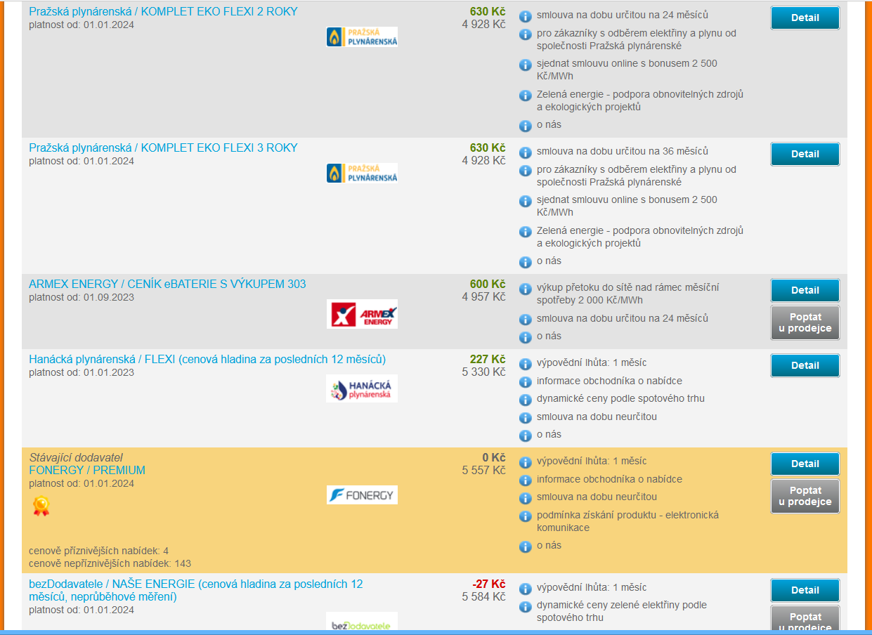 Nevydržel jsem celý rok u jednoho dodavatele. ČEZ mne držel s cenami celé léto na vládním stropu a to by se v topné sezóně nedalo z důchodu utáhnout.cipis píše: čtv lis 16, 2023 10:20 pmTak to pak ale je to sdělení výše úplně mimo, když to nemáš za celý rok.