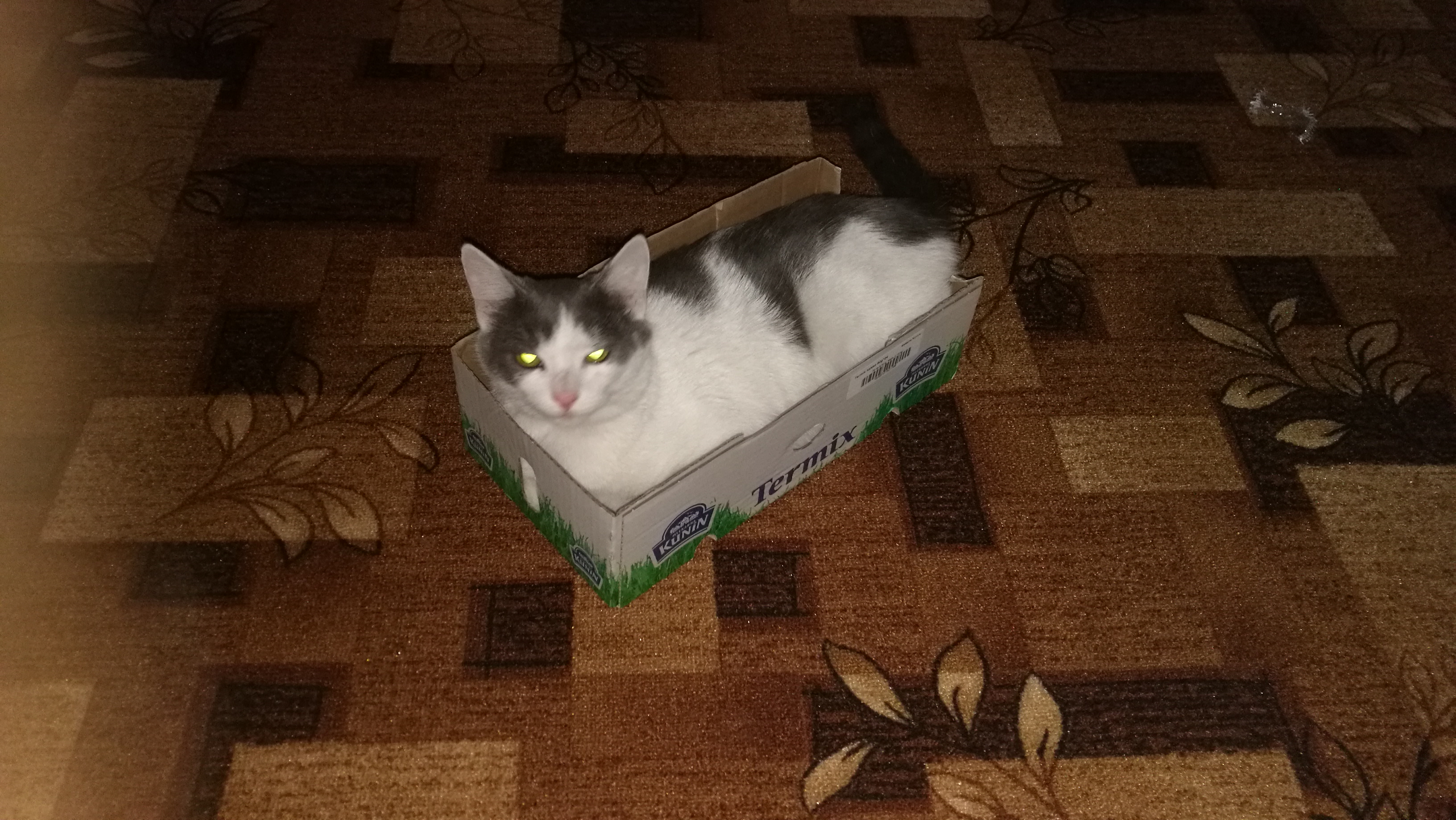 To mi připomíná naší kočku, ta miluje krabice a nejzajímavější je že se dokáže nacpat a skomprimovat do daleko menší krabice než je ona sama.