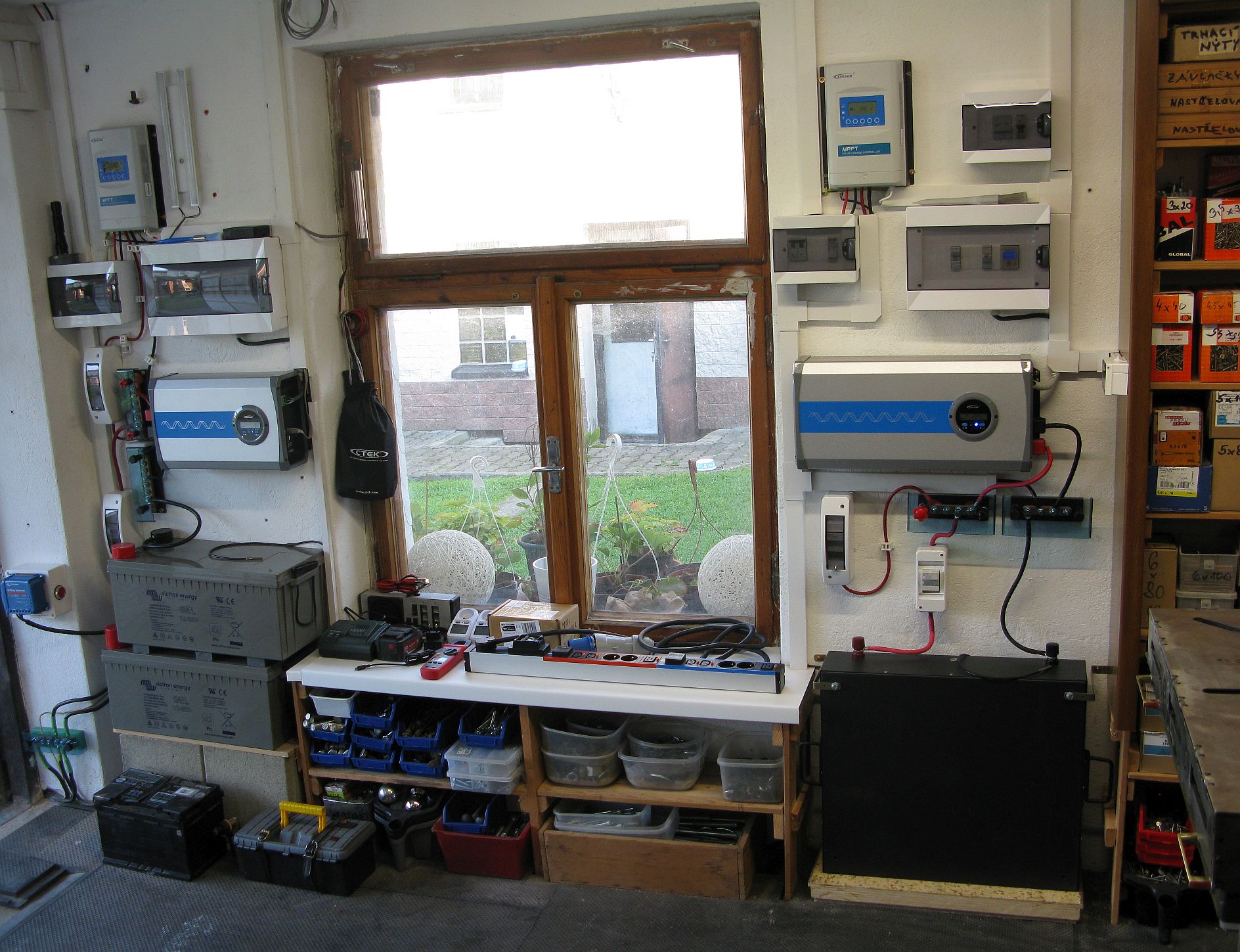 Phoenix 5 kVA + MP 24/5000 (můj byt + wifi/kamery/atd. + máti byt)