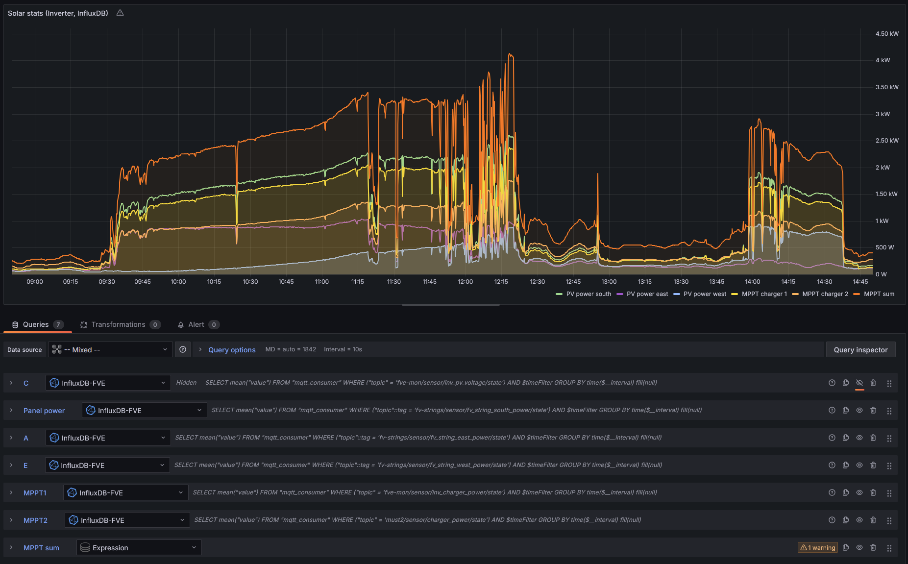 Pro mě ty grafy Shelly nejsou úplně zásadně důležité, jen jsem chtěl, aby to nějak přiměřeně přesně vykreslovalo příkony na fáze v součtu skrze monitoring souběhu spotřeby a různých peaků při běžném provozu domácnosti, než nainstalují na jaře elektrárnu...glottis píše: pát led 10, 2025 6:48 pms temi pocty v grafane bebo influx opatrne. Treba to strasne spatne pocita veci, kdzy mam treba 3 faze ale datove body nejsou v jeden casovy okamzik. Clovek by rekl ze to nejak prumeruje. Ale nekdy je to dost divocina. Spis to dela graficky nez matematicky. Zalezi pak i jak s ema cara spojit s minulym bodem.