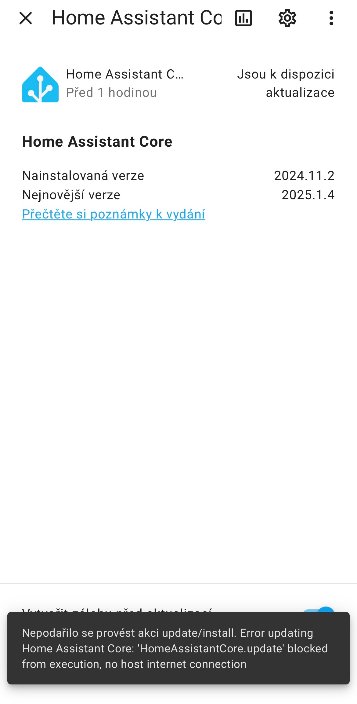 Tobě to nehlásí dostupný update HA nebo HA Core? Já čekám s update pár dní a když nikdo nehlásí průser, tak to pustím.