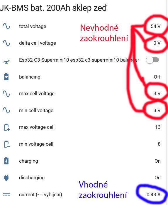 Napětí to před zobrazením zaokrouhlí tak, že je to nepoužitelné. Proud to ponechalo jak to bylo předtím. U entit při zobrazení přibylo pár možností, ale jen tak narychlo jsem nikde nenašel jak to zobrazení změnit a přidat víc platných cifer.
