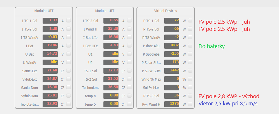 Já už mám taky na cestě dalších 8ks panelů. Baterka zatím velikostně stačí v pohodě na 2 dny ale pak už je krize, tak chci zkusit přihodit ještě nějaké kWp. Případně v regálu je místo ještě na 2 packy baterek, takže bych celkově mohl nacpat uložiště okolo +-26kWh a v panelech okolo 13kWp. To už by mi mohlo vykrýt většinu spotřeby.