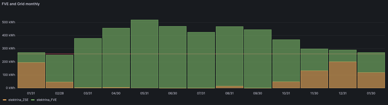 Ahojte, malá rekapitulácia po takmer roku (od 7.2.2023) prevádzky. Pred zimou som doplnil 1P prepínač sietí na ňom je vetva kde je el. rúra a rýchlovarná kanvica, na FVE to prepnem predpokladám niekedy v marci.