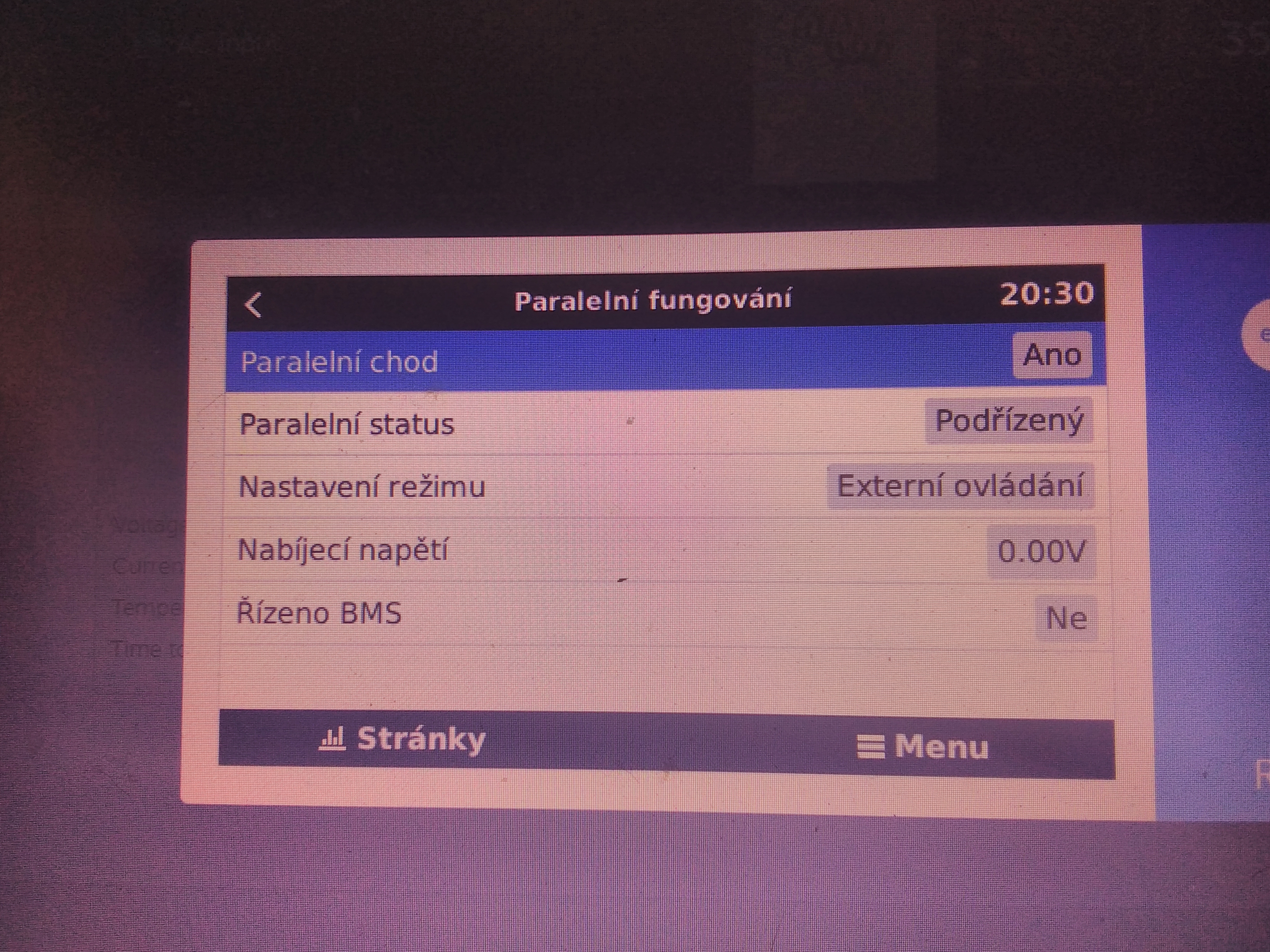 Ale to víš že to jde, jen to musí říkat BMS. Takže úkol zní, připojit bms do systému a je to. Pak se ti tam objeví ext control u mppt a máš po starostech.