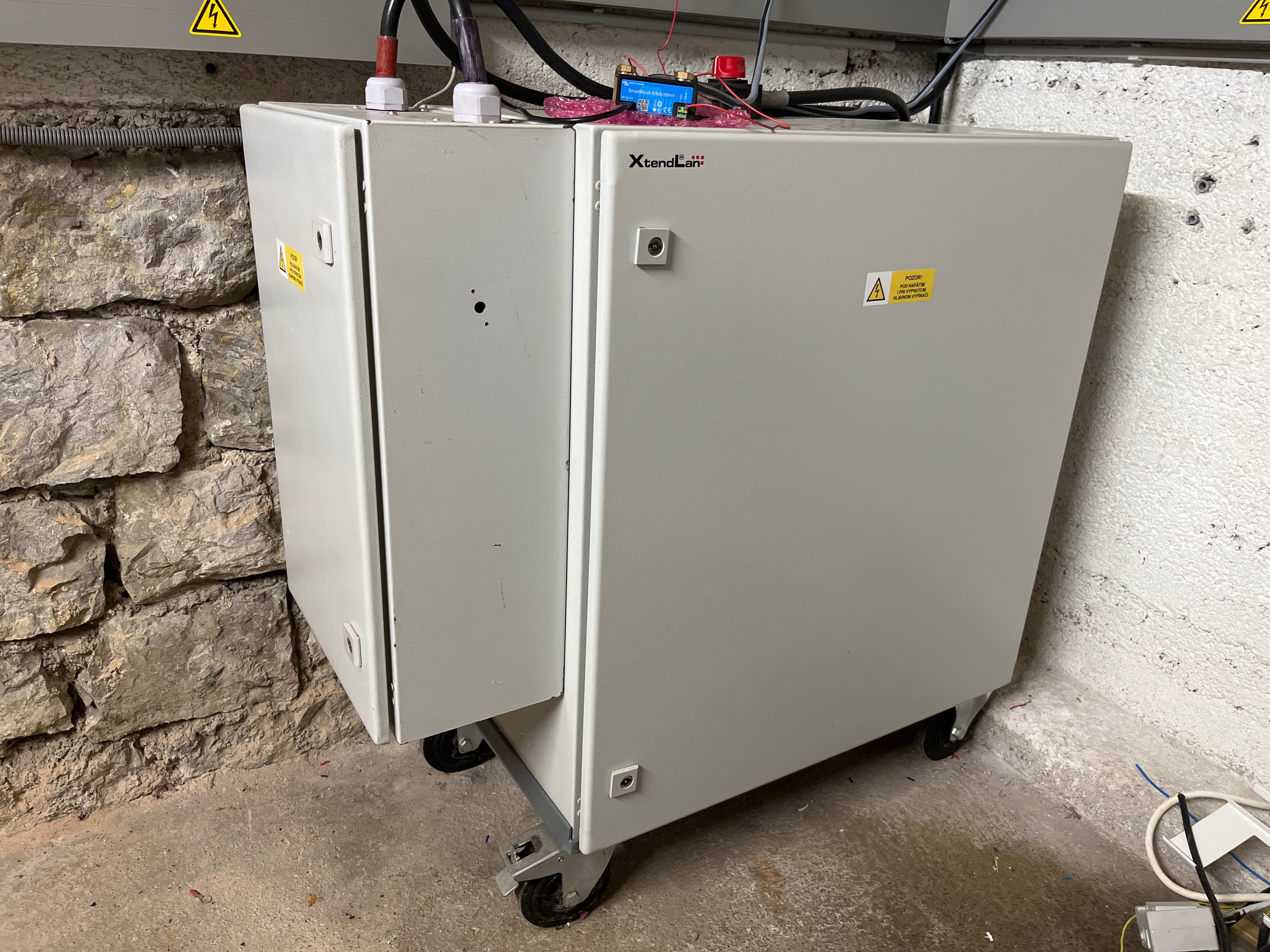 35kwh na koleckach co je asi cca 260kg dokopy (baterky,skrine,istenie kable,busbary,konstrukcia, bmsky) a je to 1,5m od dveri hned smerom von na dvor.